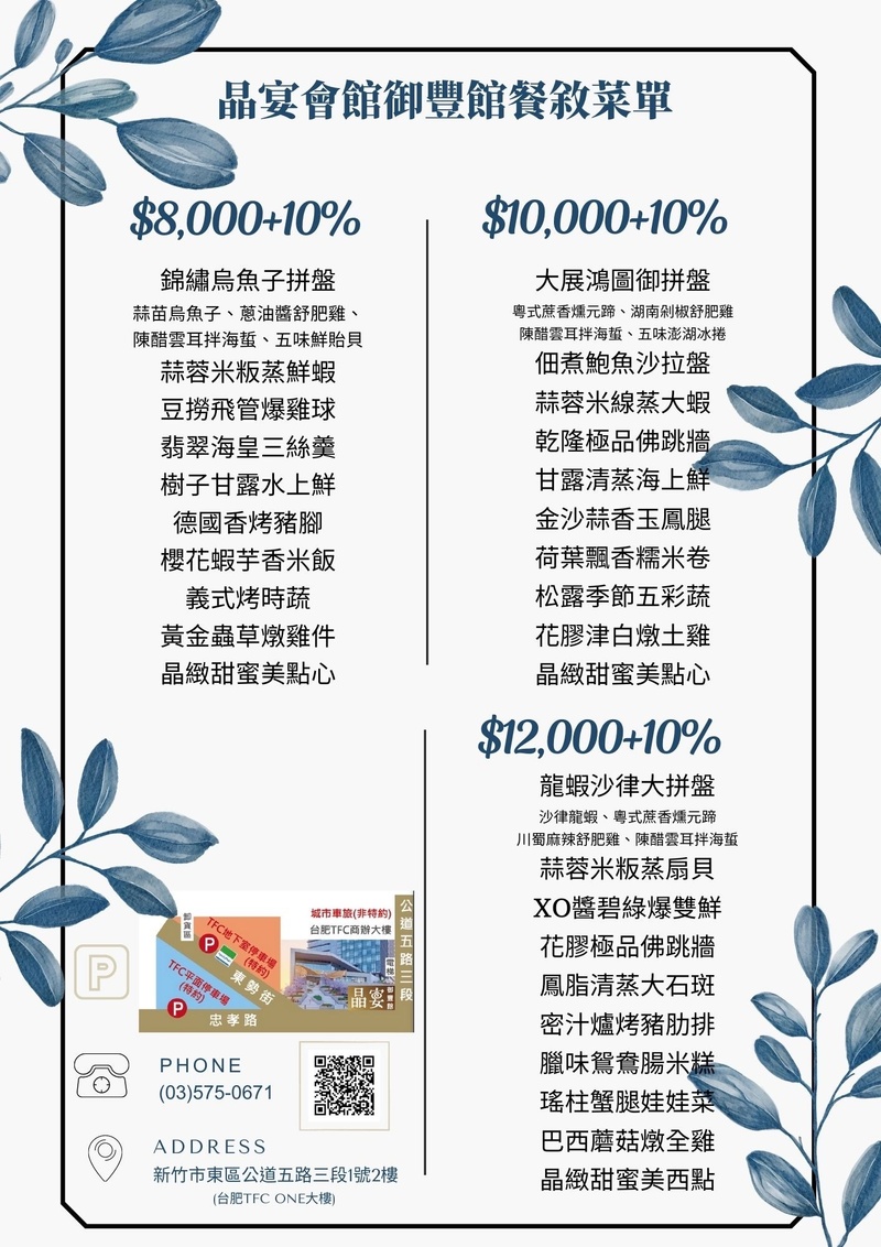 新竹市東區晶宴會館-御豐館(家宴、一般用餐、假日餐敘、謝師宴)