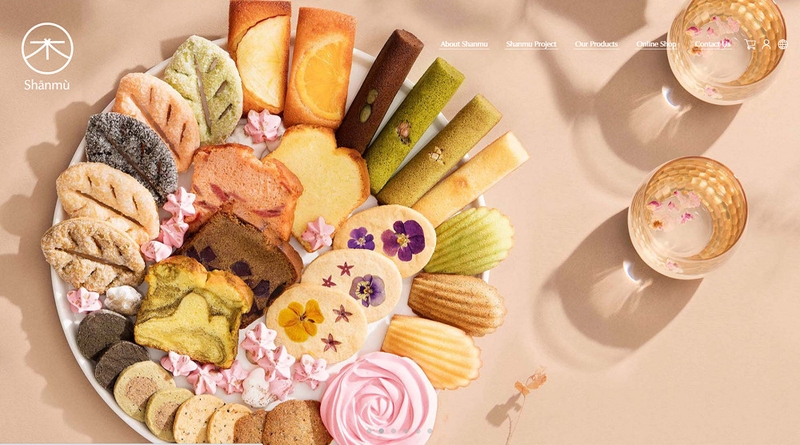 花見餅乾(上面有押花):口感酥脆不乾澀,花的種類與造型會隨著季節變化,搭配當季花卉製成