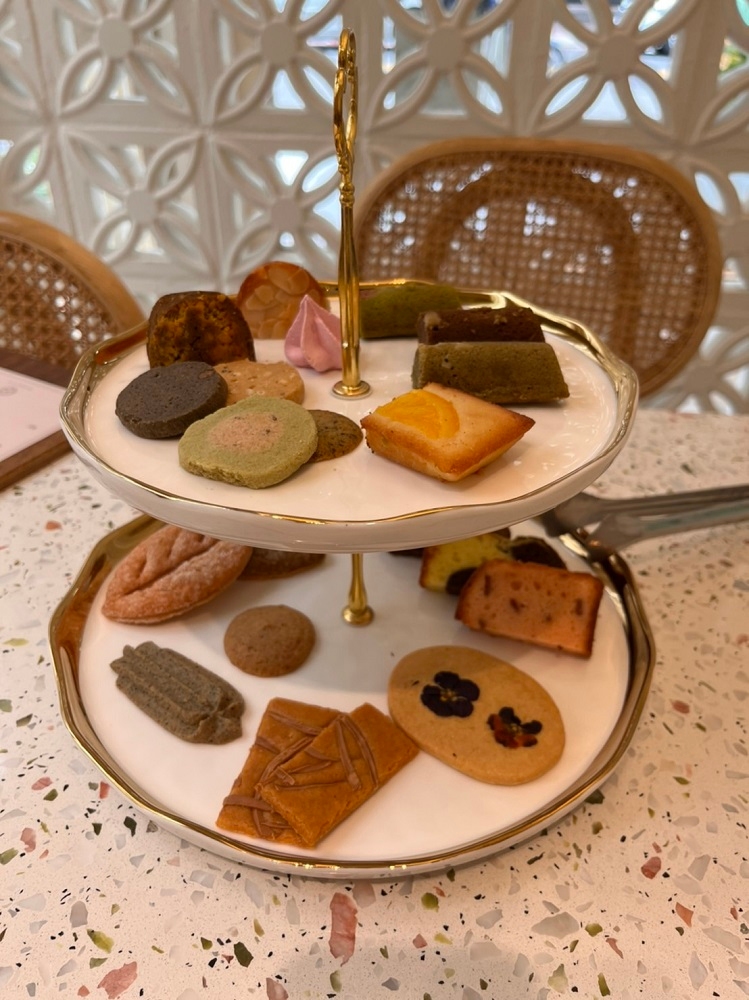 裡面的餅乾排列有三種格式,最左邊釋放兩款台式餅乾,中間是放茶濕蛋糕,最右邊則是其他餅乾,只要放得下,選幾種都可以