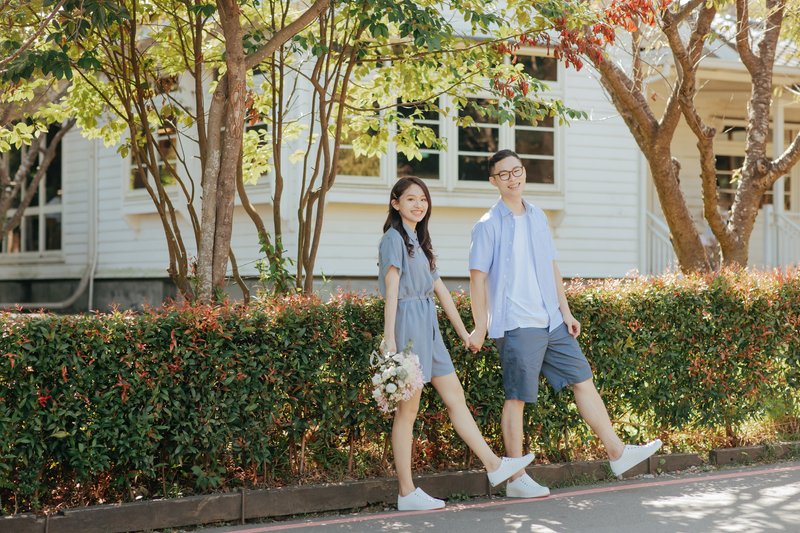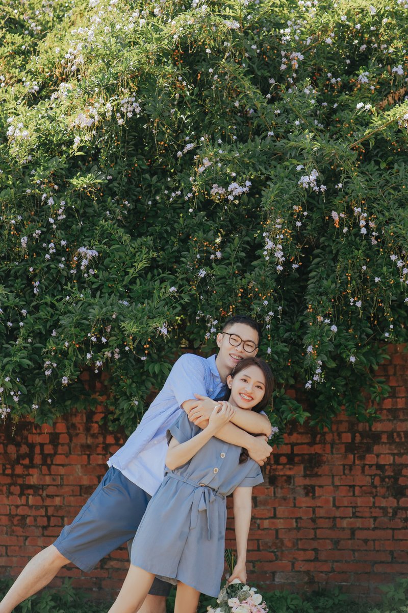 之前聽到不少人分享拍婚紗的心得都說會很累,但是洋洋可能也把這個考慮進去了!在討論拍攝地點時,就會把各點路程考慮進去,安排出最妥當的行程,當天拍攝過程確實也是很輕鬆愉快,每個點都有足夠的時間,不需要匆匆忙忙地趕來趕去,心情自然也就輕鬆,一張百看不厭的婚紗照最重要的不就是因為照片裡有個發自內心而笑的你們嗎?現在回想起一年前,仍然記得當初笑開的我們。