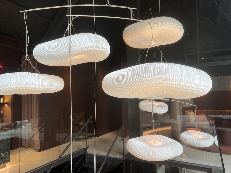 在欣賞完禮盒設計後,轉身上樓梯到二樓,馬上會看到高高懸掛的藝術裝置!雲朵!