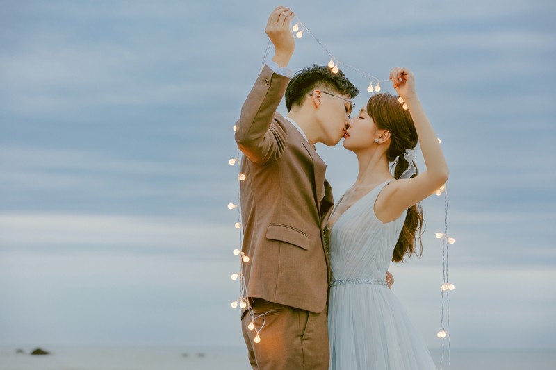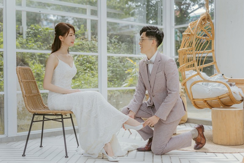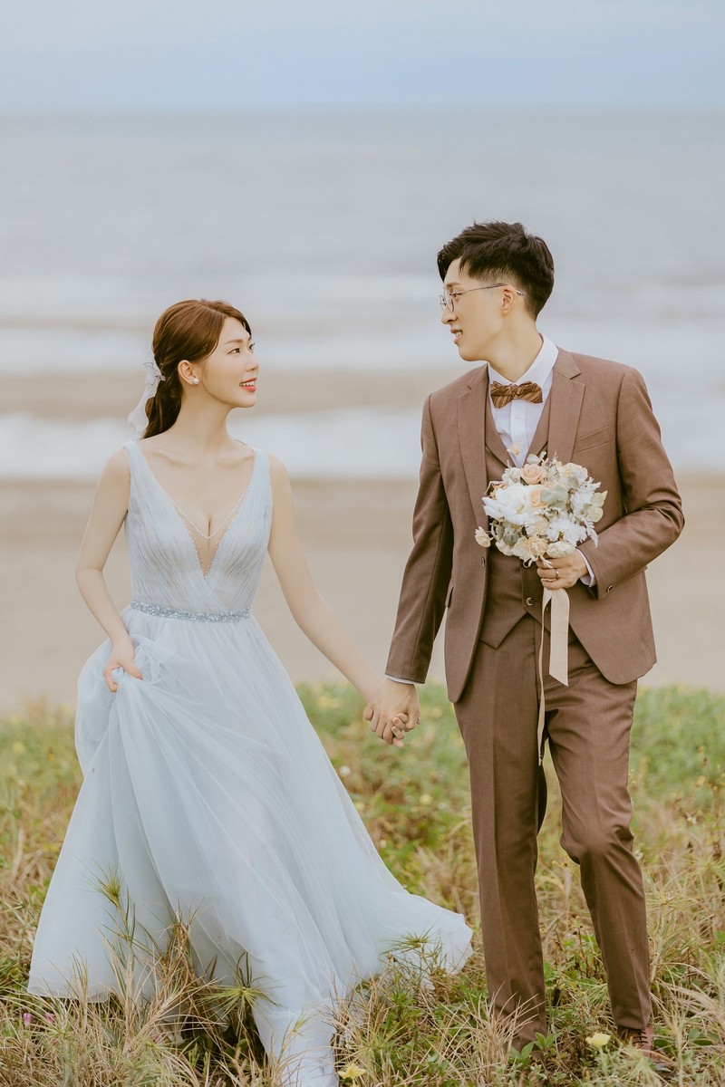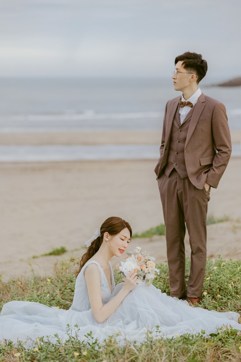 小小提醒各位準備拍照的新人,前一天真的要早一點睡覺,不然就會像我最早拍攝的玻璃屋這組照片一樣,和稍晚的沙崙海灘組相較,臉部仍然有點浮腫 (哭)