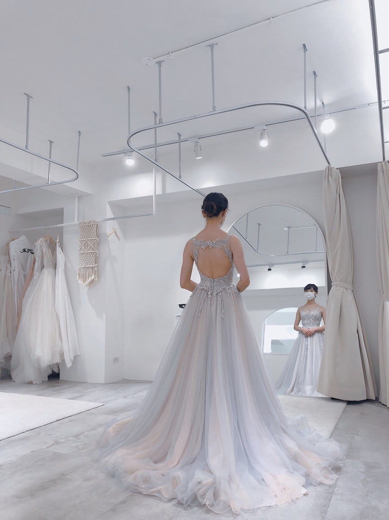 諮詢時會先讓女生試穿兩套禮服,主要是讓新人感受一下禮服的質感