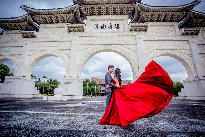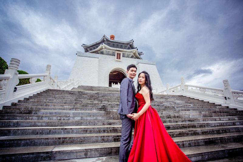中正紀念堂穿紅色緞面禮服真的很搭,照片那張甩裙擺的效果也好讚(自己說),還被路過的民眾偷拍了~