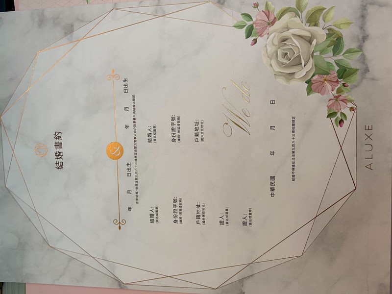 另外,亞立詩也會提供兩種婚約可供選擇,說實話我們也是到了亞立詩後才知道後續登記還需要準備結婚書約給戶政事務所。
