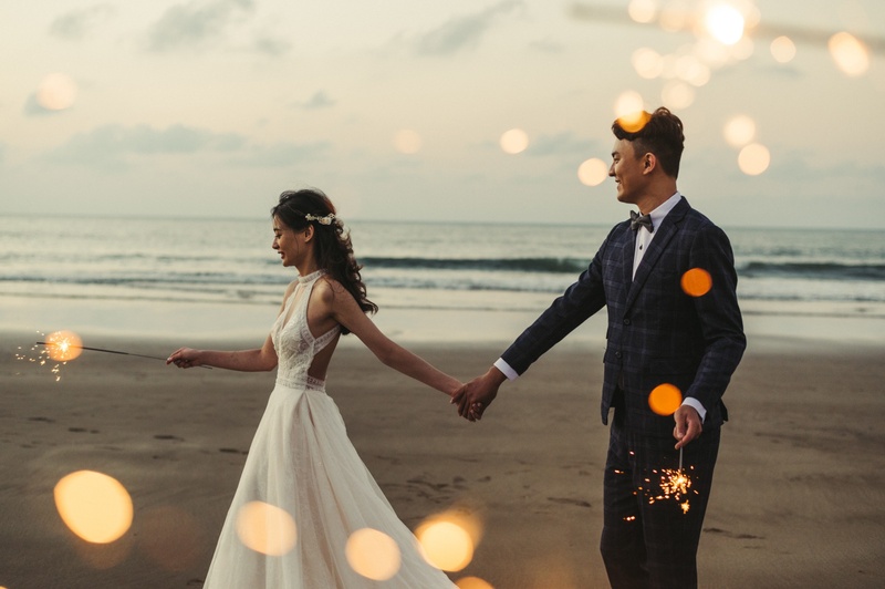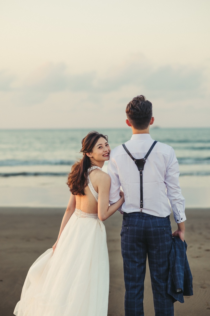 拍攝當天的攝影團隊,耀文老師、新秘恬恬、攝影助理昇哥,前幾天是颱風天還下著大雨,好險拍攝當天晴空萬里,讓我玩得很開心,在沙崙沙灘上拍到了唯美的夕陽,也有唯美的婚紗照