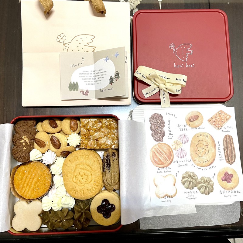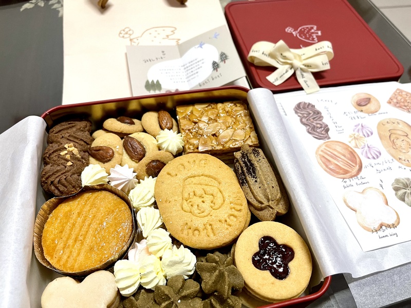 收到包裹後,鐵盒是霧面的,打上米白英文字樣蝴蝶結,非常有質感。餅乾造型完整又精緻,欣賞了好久才跟家人開始分享,其中我最喜歡的是檸檬糖霜餅乾,酸甜不膩,餅乾也很香,吃了2片~爸媽喜歡杏仁奶油餅乾,弟弟喜歡花生巧克力餅乾,老公喜歡覆盆子果醬餅乾,總之一整盒老少咸宜。