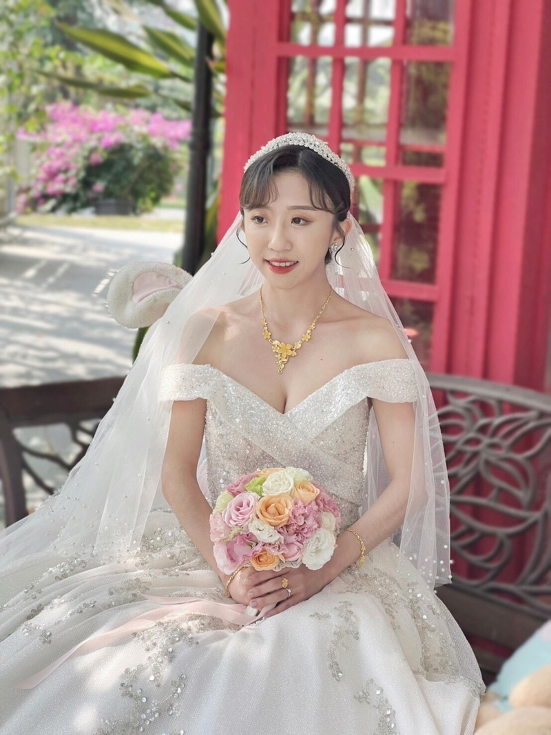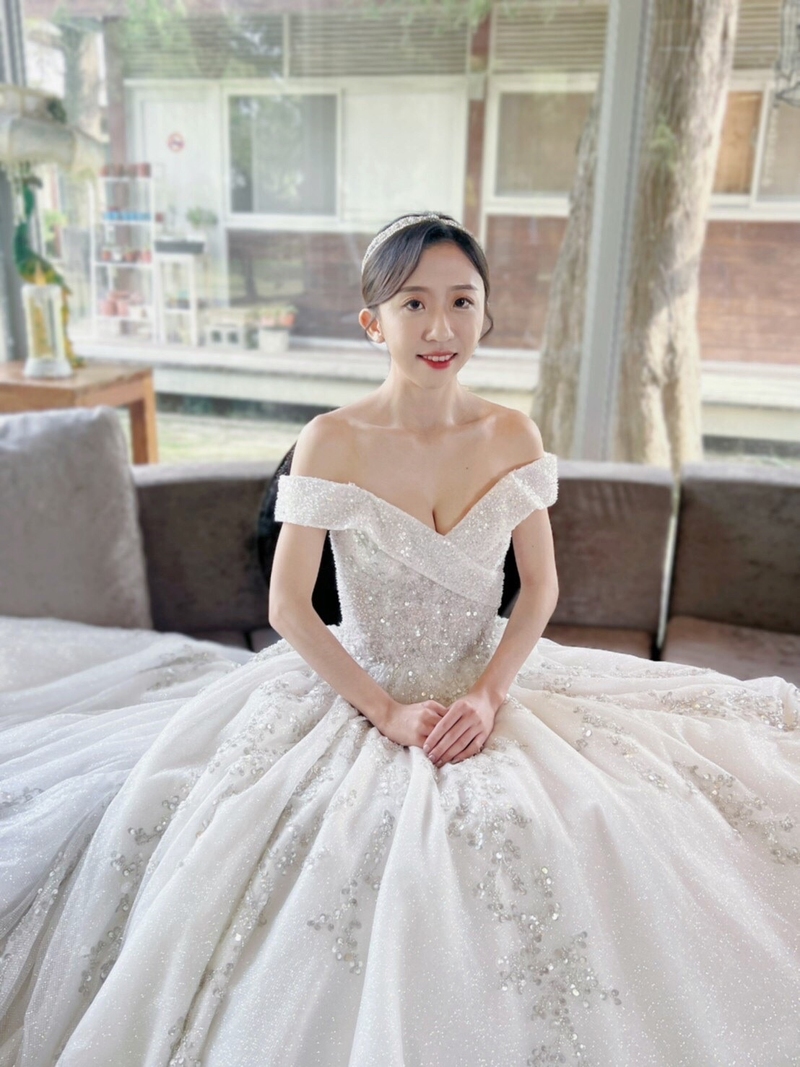 萬分榮幸遇上年輕的蔡蔡造型師,當天幫我打扮四種造型,在白紗時,幫我換上雙層長頭紗鑲上滿滿珍珠,超美的頭紗啦~在更換第二個造型時,挑戰把瀏海剪短,差點有股衝動想跟蔡蔡造型師說連頭髮也剪掉看看,最後沒有啦~妝感部分選擇淡與濃中間,配上不可或缺並合適的耳環與頭飾,整體非常滿意,非常推薦給喜歡蔡蔡造型師作品的朋友們👍🏻