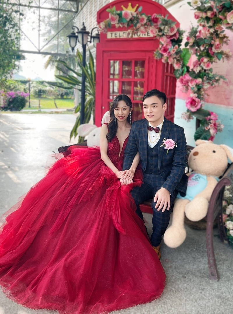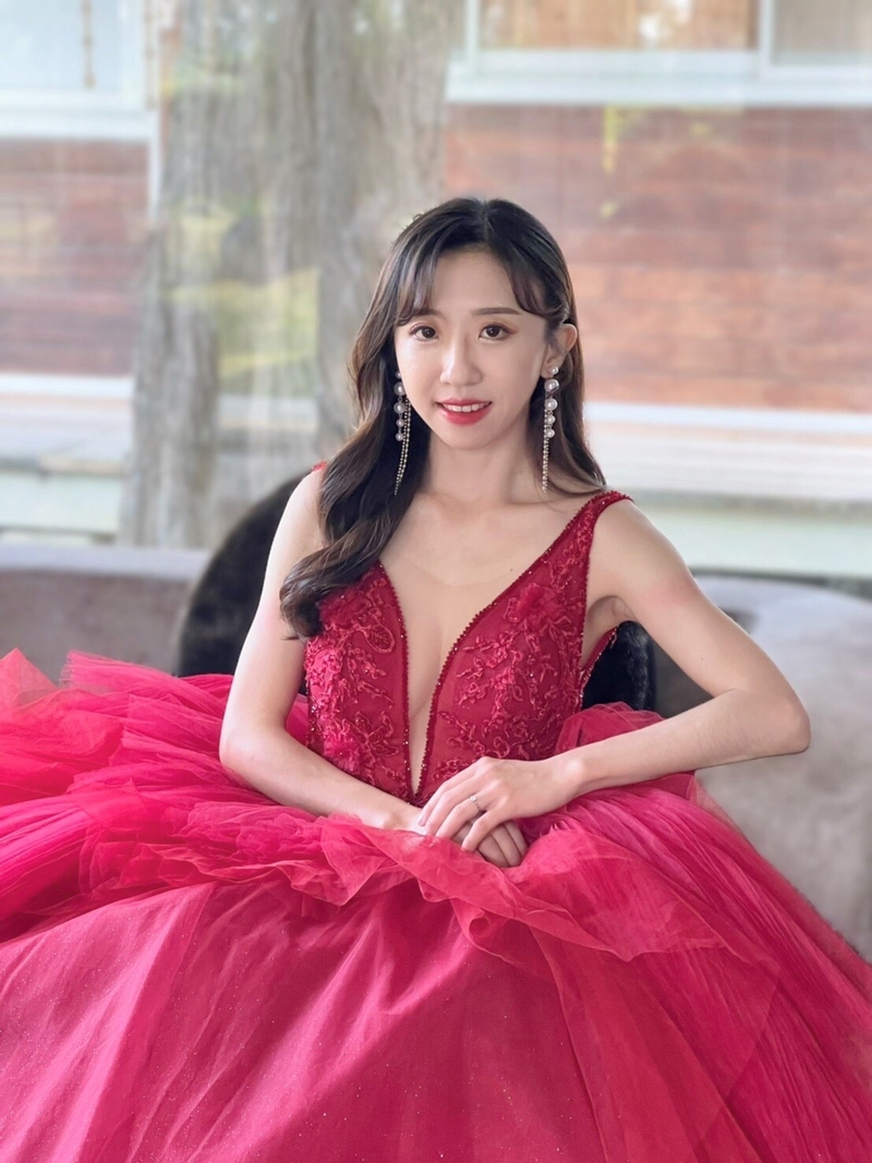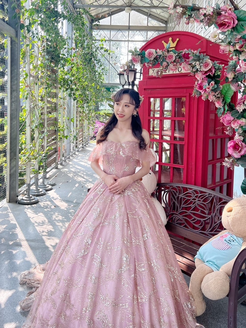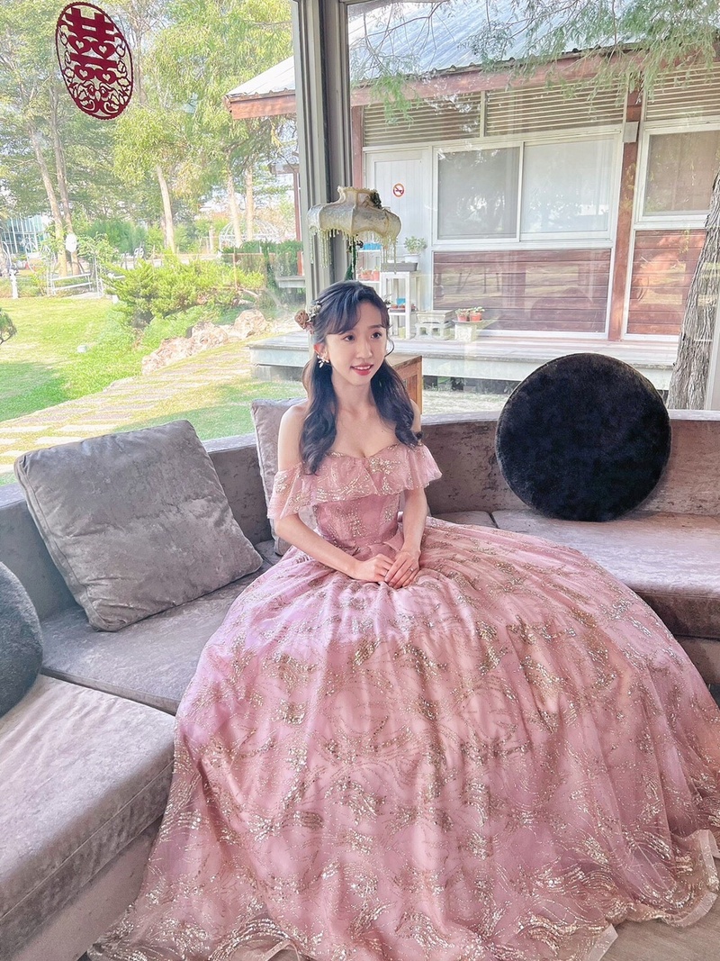 宴客禮服手做區,本身非常喜歡亮晶晶的我,一看到這款白紗整個360度都是微五色亮晶晶,直接排名心中第一名,對於瘦巴巴的身材選擇卡肩式的設計,可以走個優雅清新路線;第二套粉金色卡肩(一樣亮晶晶的🤣)選擇走甜美可愛路線,剛好非常適合敲敲杯並搭配輕快音樂進場的場面;最後送客為酒紅色雙肩深V設計(一樣亮晶晶的🤣)適合走性感浪漫路線;以上三套我都選擇蓬裙亮色系,因為禮服要選擇自己喜歡又適合的真的非常重要!非常推薦給喜歡帝芬妮婚紗的朋友們哦~