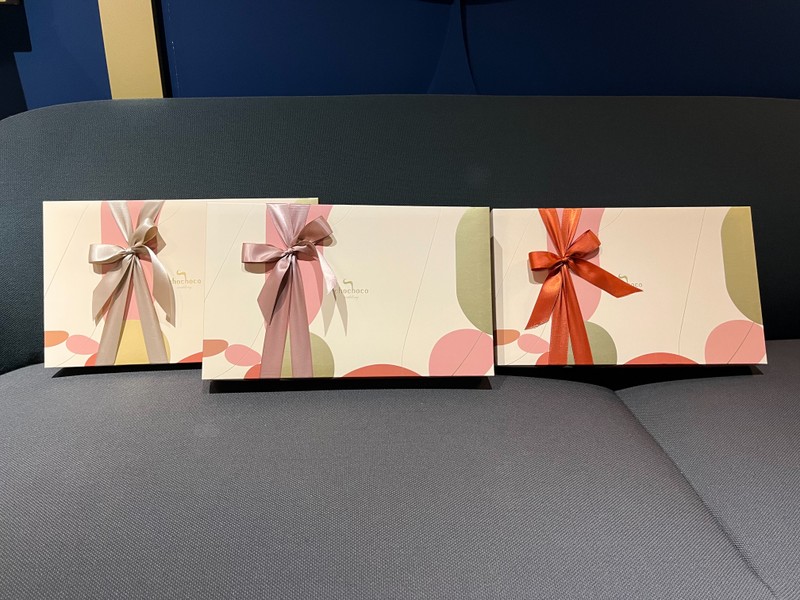 最後是當天就直接下訂了,目前只是在猶豫要哪一款造型的盒子,Chochoco的盒子或是外裝紙袋,我覺得都是走比較低調一點的路線,顏色都是偏柔和,連外帶的金色都是帶霧面的銅金色,如果喜歡比較亮眼(像是亮金色)或是我也超喜歡的布包型,可能就比較沒辦法打中。