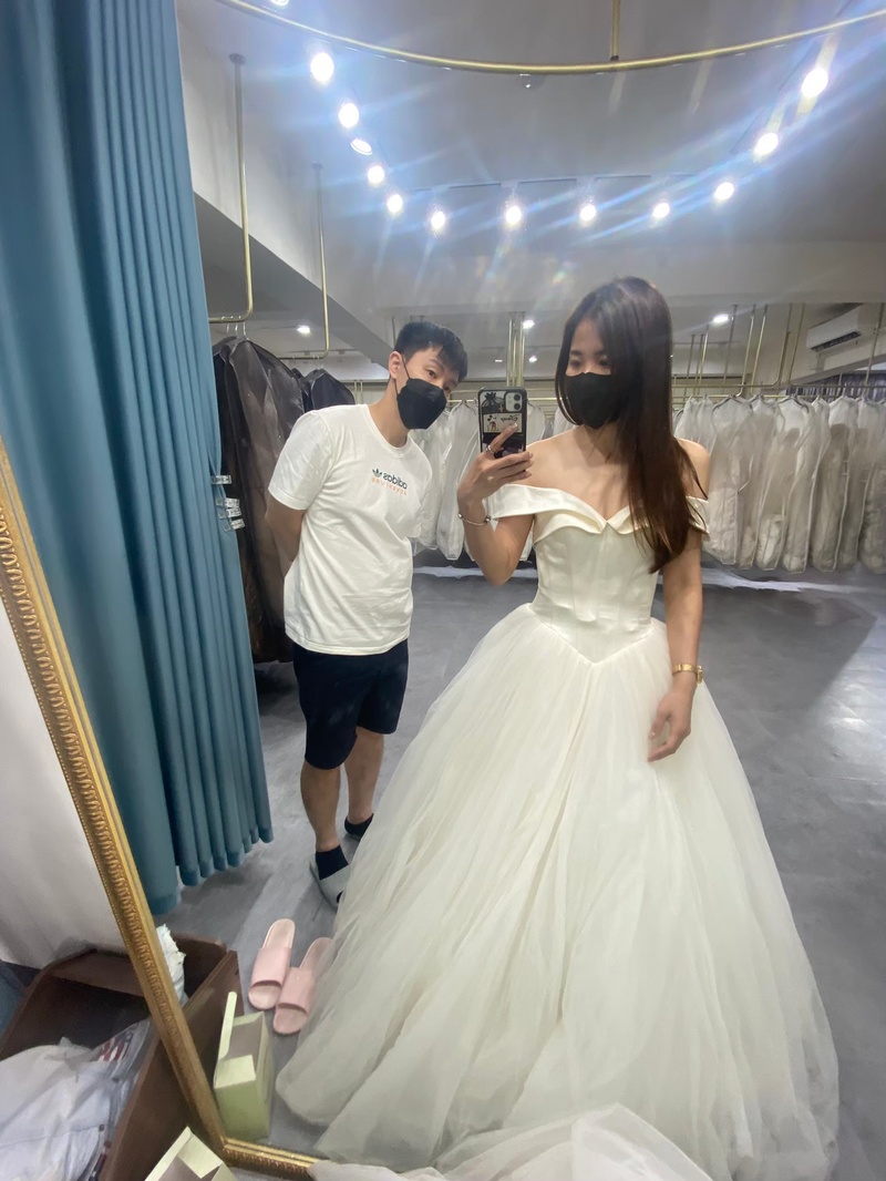 拍照禮服挑選過程中專員告知我們魚尾和蓬裙較為適合甚麼身型的人,印象深刻的是我們來來回回總共五趟終於把拍照禮服確定了下來,因為女友較瘦,禮服專員建議魚尾較適合,但女生心裡總是會有自己對婚紗的想法,想要拍攝照片禮有件蓬裙,禮服專員也是不厭其煩的陪我們找想要的禮服,也要訴我們一定要選到自己喜歡的禮服。最後,終於挑選到我們心中期待想要的禮服!