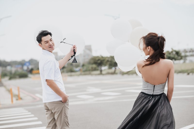 因為確診原訂日期延了兩個月才拍攝婚紗,非常怕當天的天氣不好,幸運的是老天給了我們一個舒適的好天氣!拍照過程中化妝師時不時為我們整理妝髮,讓我們保持完美的造型,讓拍照的整體感加分再加分!攝影師拍攝過程中十分的親切,有時我們有尷尬的笑,攝影師也是很幽默地化解,讓我們拍照的成果不會看起來這麼的奇怪!攝影助理也是一樣,外拍中好幾次新郎放空都被攝影助理提醒!