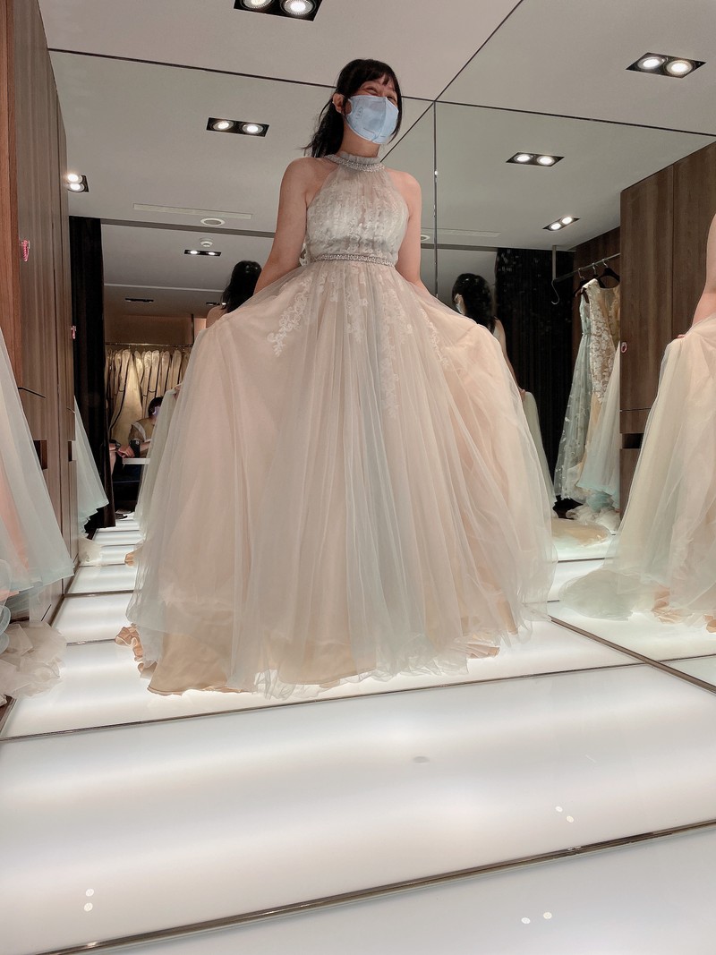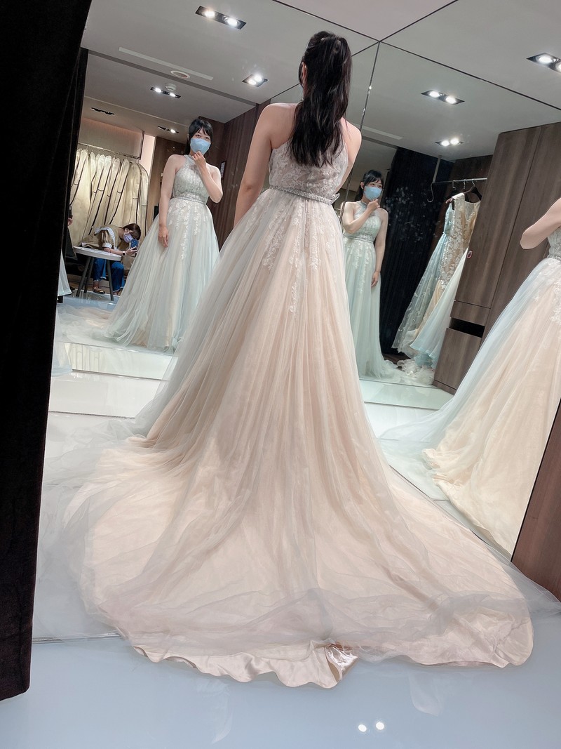 再來遇到禮服專員七七,人美心善,非常耐心陪伴從18:30挑到快九點,整個過程對談舒服,專業到位,對於有選擇障礙的我,能夠適時地提供過往經驗,提供更多過去的分享實例,已經試了超多套禮服,還是很有耐心,幫助我挑到三套最喜歡的禮服,還分析新郎西裝可以如何搭配,整個過程有趣輕鬆,真的辛苦也很棒。