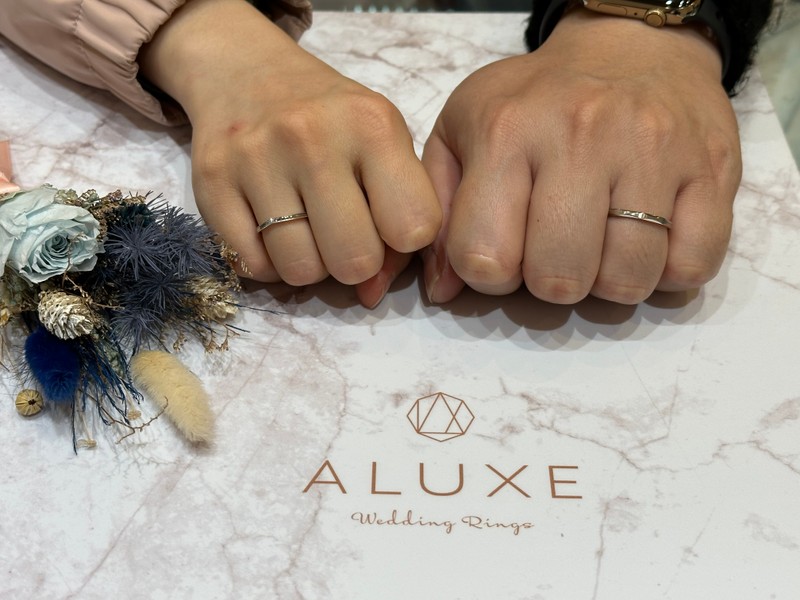 對於結婚我們是比較怕麻煩的一對,所以兩個人說好,也說服了各自的父母,只要登記就好,其他一切從簡。雖說只要登記,但心中小小少女心還是期待要有婚戒跟婚紗照,畢竟還是想宣告大家~我們結婚了!!關於婚戒要買哪家,老公原本說只要我喜歡就好,所以網路上搜尋後便先預約了一家日系品牌,挑的過程服務很親切,戒指也蠻好看的,只是自己沒有像電視上演挑婚紗那樣激動的感覺,也微微覺得老公對於挑婚戒有點冷淡⋯後來朋友說她在ALUXE 亞立詩買婚戒,建議我也可以去看看,多看幾家可以更知道自己想要什麼款式。在亞立詩的服務很貼心,對於我不知道自己想要什麼款式沒有任何催促,也針對我的手型給建議,更重要的是男戒的款式很多,老公挑到眼睛都亮了。最後我們沒有挑原本一對的戒指,而是各自挑喜歡的,畢竟最長時間看著它的是自己。