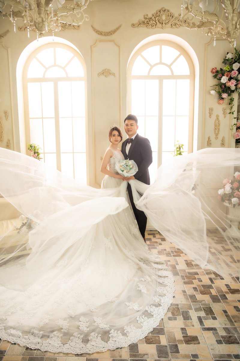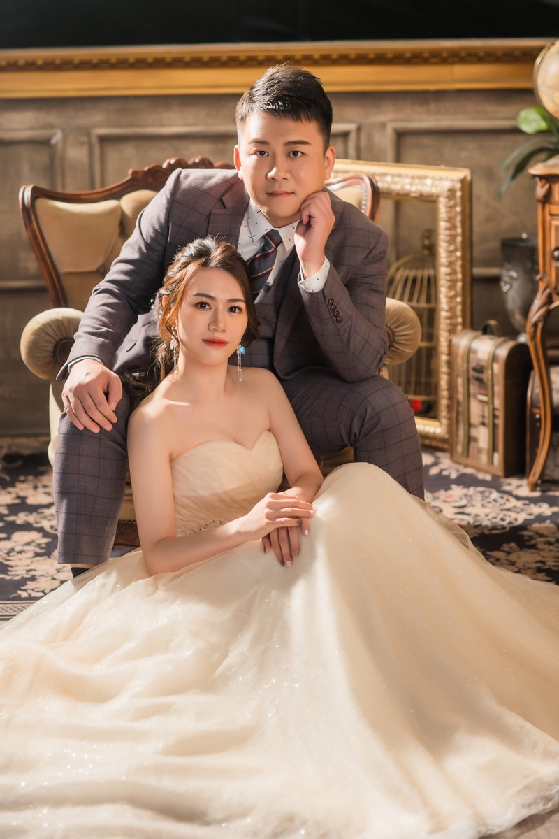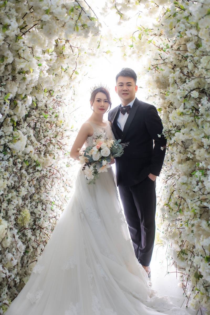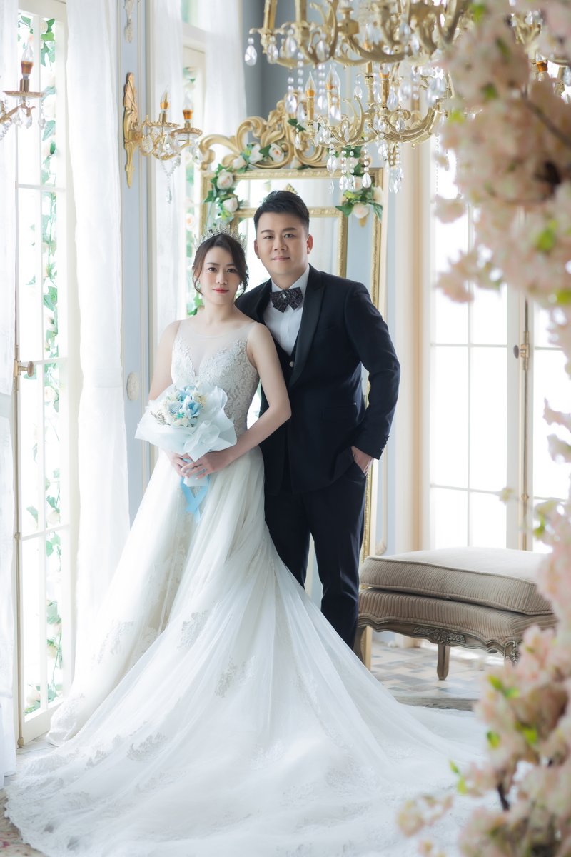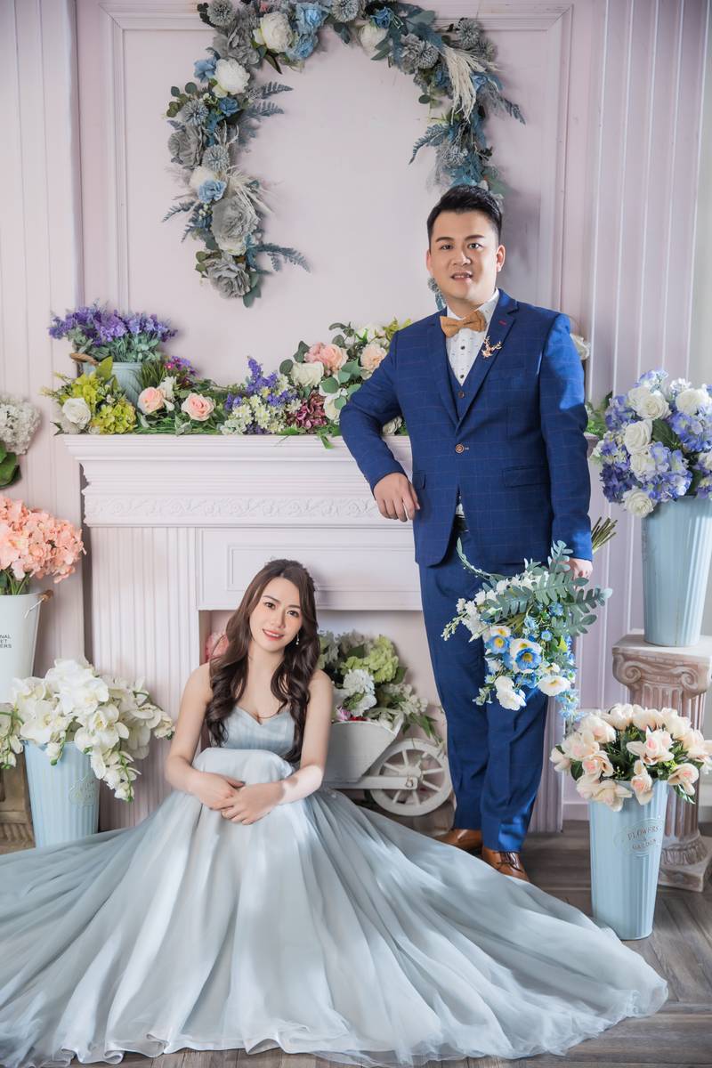 最後謝謝攝影師徐sir和燈光師威廉,拍攝前燈光師都會告知一些方向和姿體擺動的相關內容,到棚內準備拍攝的時候其實很緊張,加上攝影師一開始有點嚴肅所以更加緊張哈哈,但拍攝過程發現徐sir相當的幽默而且很有耐心的請我們移動一些手勢角度甚至親自協助我們調適,發現其實不是拍照拍的累而是笑的好累😂,但也因為這樣笑容更加自然!還和造型師小芝誇獎了一下攝影師徐sir的幽默哈哈,連我們自己攜帶的捧花和氣球徐sir都很用心幫我們規劃在各種場景內也會看我選擇的婚紗搭配適合的室內場景,非常的專業!!