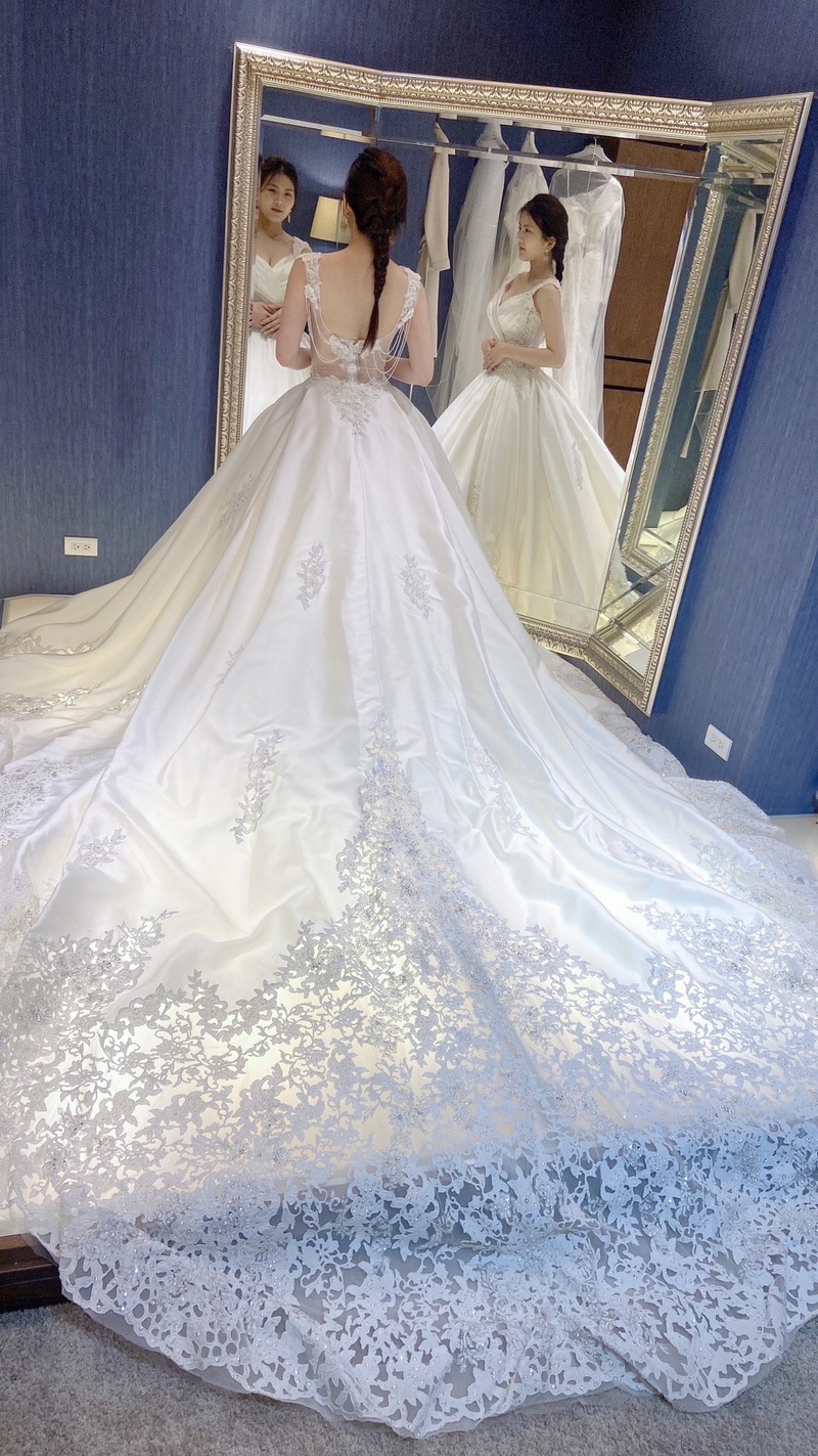 從一開始踏進新竹法國巴黎婚紗,老婆就被周圍精緻的禮服吸引,負責向我們介紹的Cona人超級親切,很詳細的跟我們解說各種婚紗方案,也不忘隨時提醒我們要注意什麼事項。