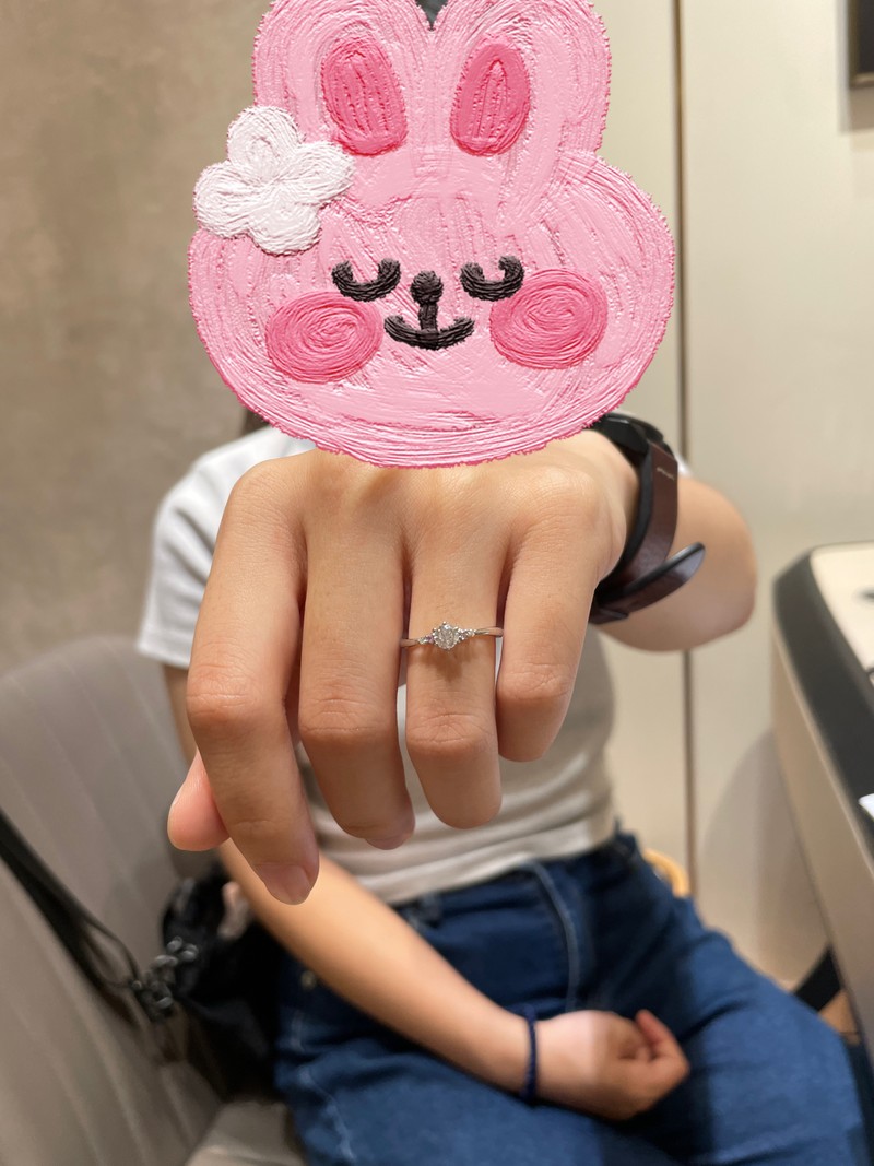 本來對鑽戒很無感,試了幾次,都沒有那種命定鑽戒的感覺🥲感謝熱心的Demi過程中只要發現我們有一點興趣的款式,都會馬上想到類似款並且拿來給我們試戴!