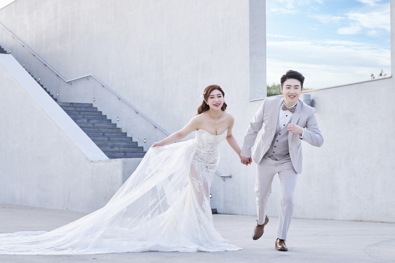 正式拍照前燈光師阿布會說明拍照的注意事項,也教我們要如何去擺動作,還跟我老公玩成一片,拍攝的過程當中攝影師Eric也很幽默超級專業讓我們拍攝過程很放鬆讓我們能進入狀況擺pose ,有時間還讓我們看一下拍的如何,我只能說很滿意