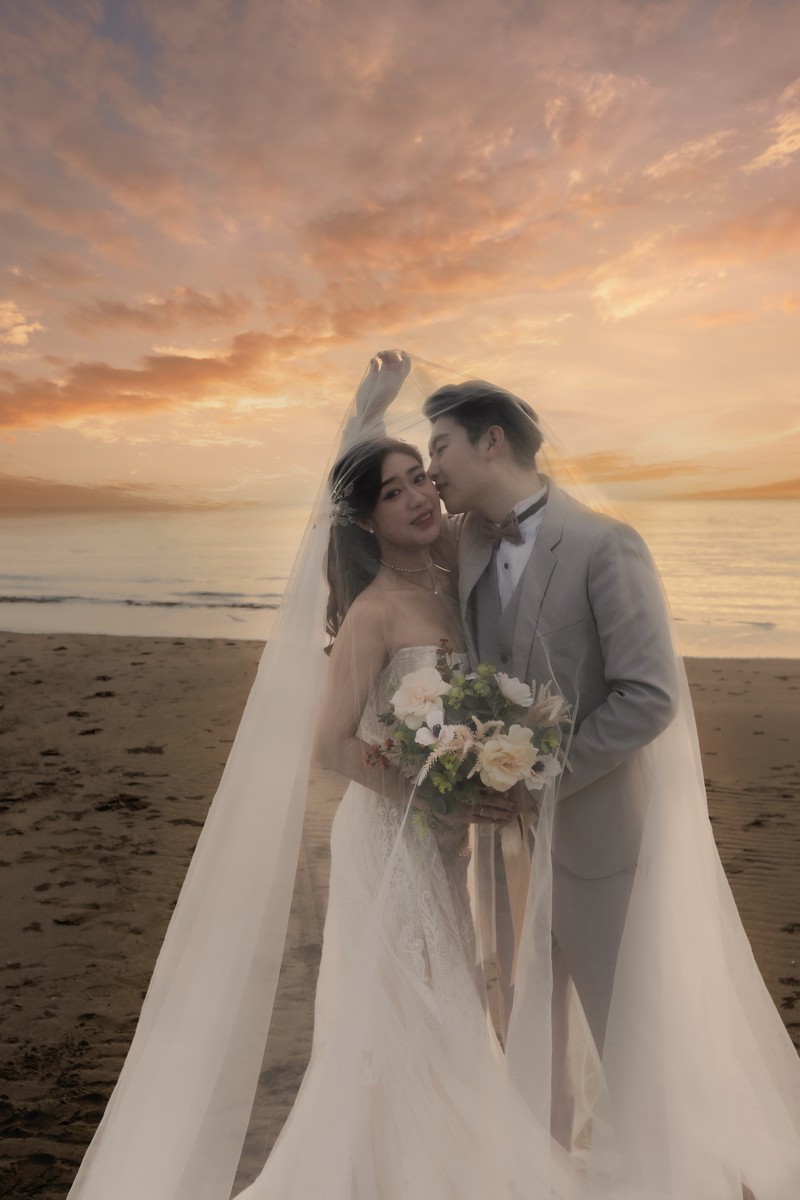 試婚紗時秘書也會依照身型及拍攝地點給予建議,讓試衣服的過程很順暢也完全沒有不耐煩.