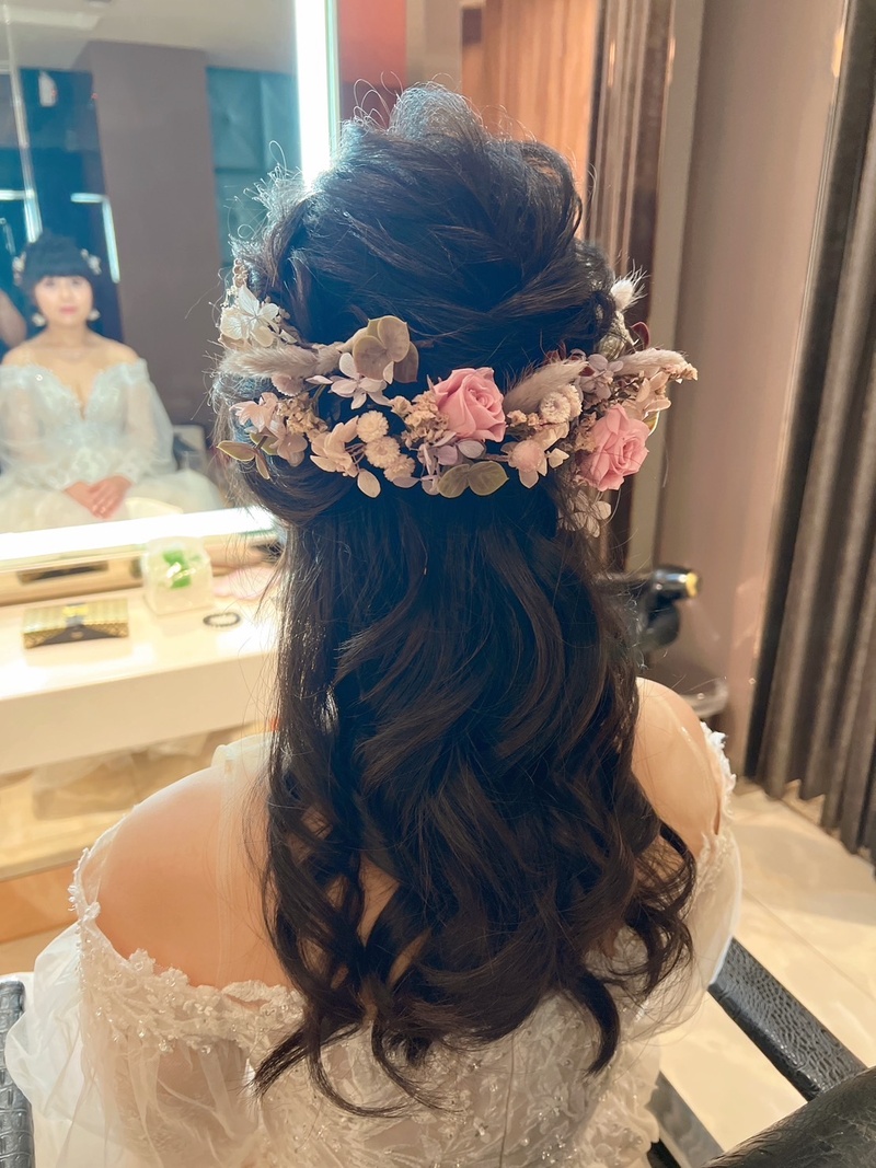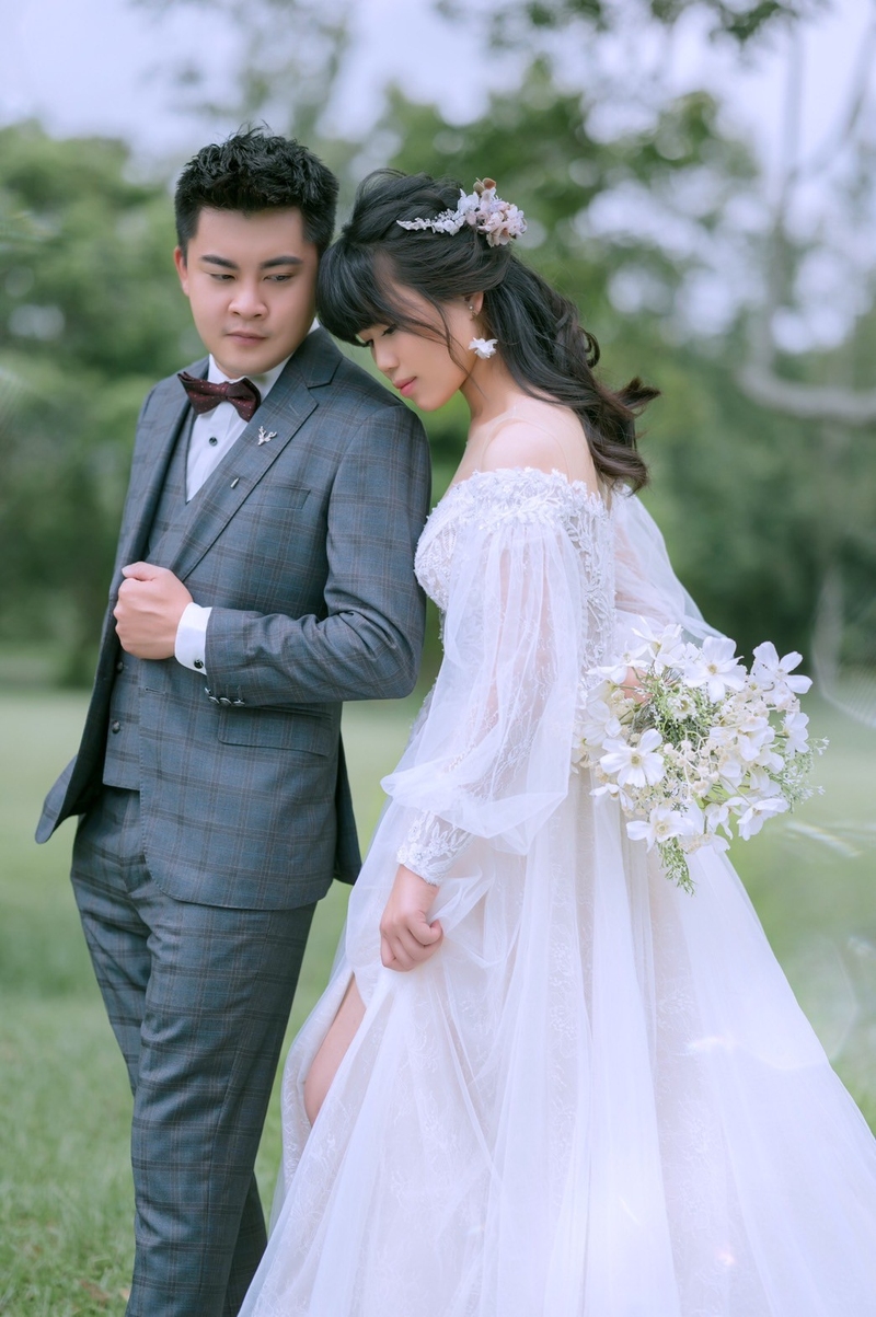 我們重要的造型師是「筠涵」,當天早上在台中華納婚紗館準備第一套的妝髮,協助我換第一套要拍攝的禮服,還有我老公的妝髮。筠涵在幫我們化妝的時候,真心感覺到她的專業化妝技巧。外景拍攝,每到一個目的地,都會很細心的注意我的妝髮,適時地幫我整理頭髮、補妝,細心的協助我換禮服。整天下來,筠涵幫我做的每個造型我都非常喜歡、滿意,美到都覺得不是自己了~