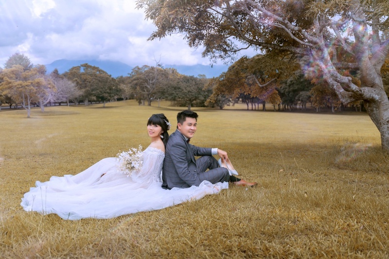 挑完禮服,再來就是最重要的拍攝日來了~當天早上到台中華納的時候,天黑黑的,我們還是跟它賭了,先去樓上VIP私人包廂準備妝髮,準備完畢就出發去外景拍攝了,出發時,下起毛毛細雨,還好到了目的地,老天爺賞臉,沒有下雨了。