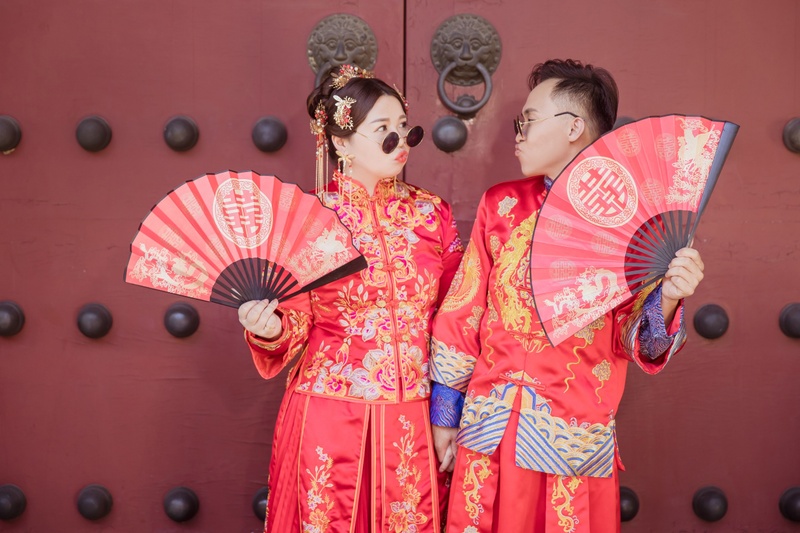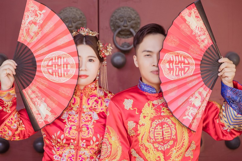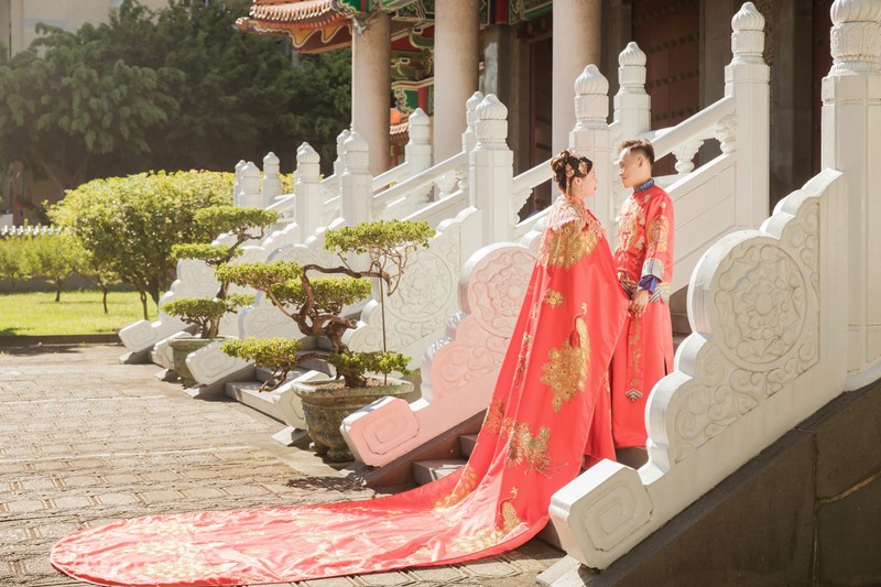 下午,我們到廟宇外拍照,但天氣炎熱。盡管汗水湧出,我們努力保持笑容和愉快的心情。攝影師靈活地利用場地,讓我們在照片中看起來像是在迎接幸福的未來。廟宇環境帶來一種祥和和祝福的氛圍,讓我們感到特別的幸福。