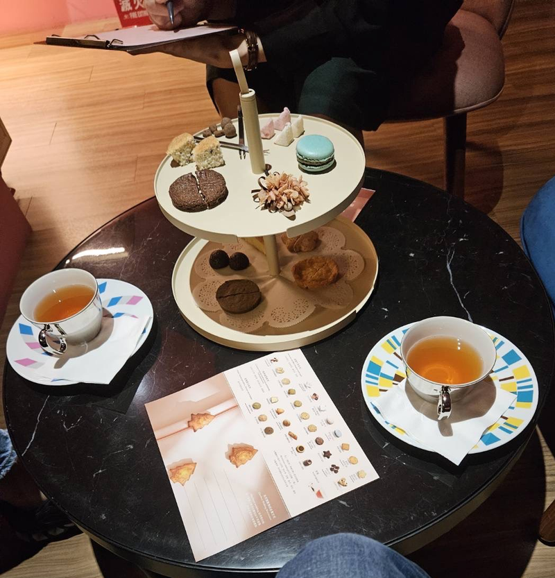 當天接待人員將我們帶到半開放包廂試吃喜餅,像下午茶般,有點心有紅茶搭配。