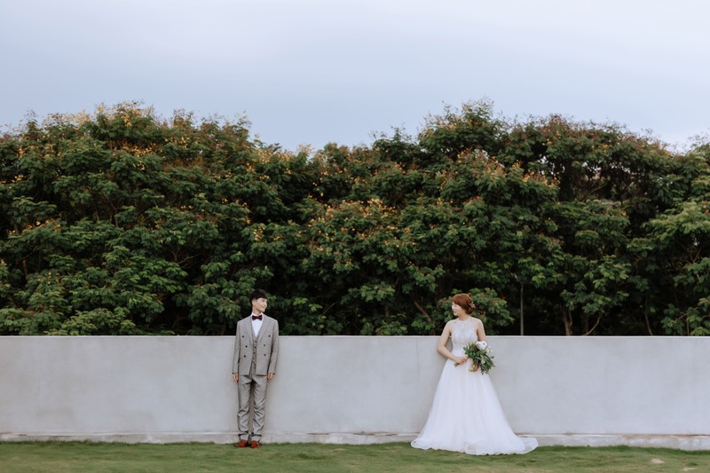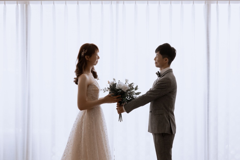拍婚紗是結婚籌備中非常重要的事,跟大部分新人一樣,因為沒有經驗,很擔心會踩到雷。我們婚期是今年11月中,但是我們7月才開始找婚紗公司。當時先上網找網友推薦的板橋婚紗公司,選了2家到現場諮詢。其實2家都不錯,參觀J2的時候,門市人員讓我試穿了1件禮服、2件白紗。因為我太喜歡其中一件白紗了,所以就決定選擇J2,我們選的包套方案是婚紗攝影和宴客分別1件白紗、2件禮服。不得不說,J2的禮服真的很厲害!