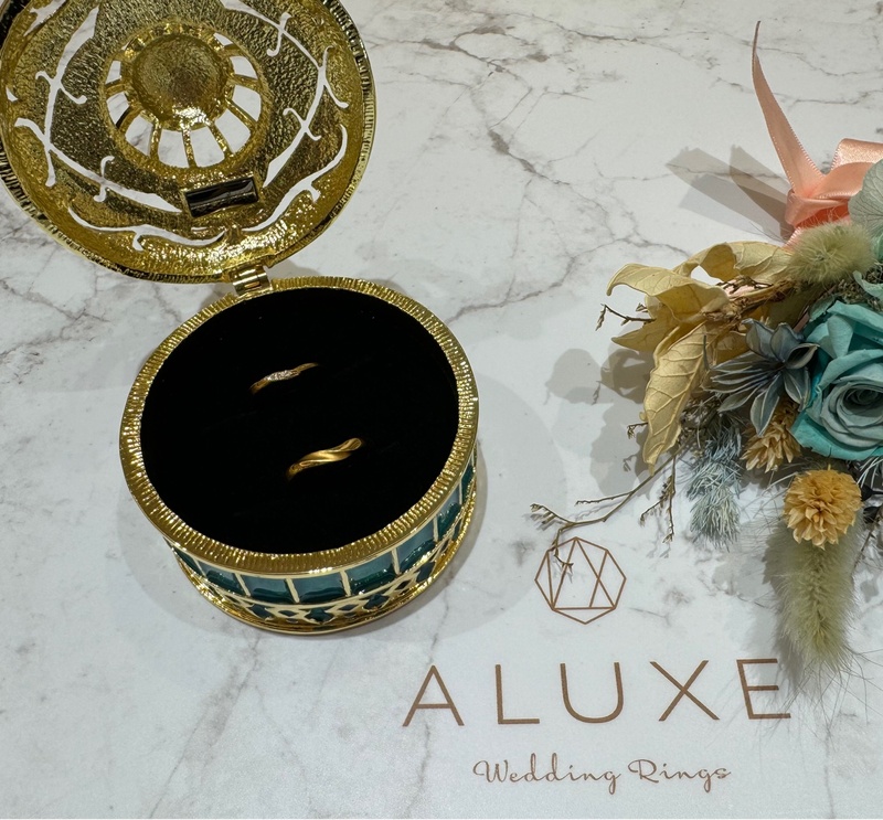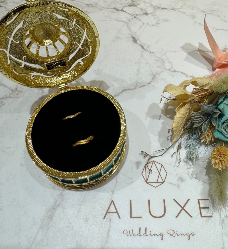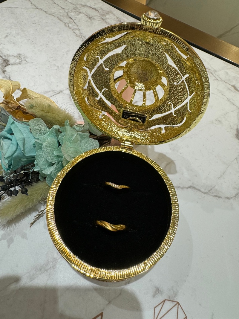 先前準老公的求婚戒也是在亞立詩買的,後來逛了許多婚戒品牌仍然沒有讓我們一見傾心的對戒,所以又回到亞立詩看看,沒想到一向嫌棄K金俗氣的我們,一眼就覺得阿拉丁這款戒指很順眼,一連試了好幾個還是覺得阿拉丁系列是我們的命定,閃亮的珠寶盒真是喜歡到不行,滿足女生的虛榮心,哈哈。