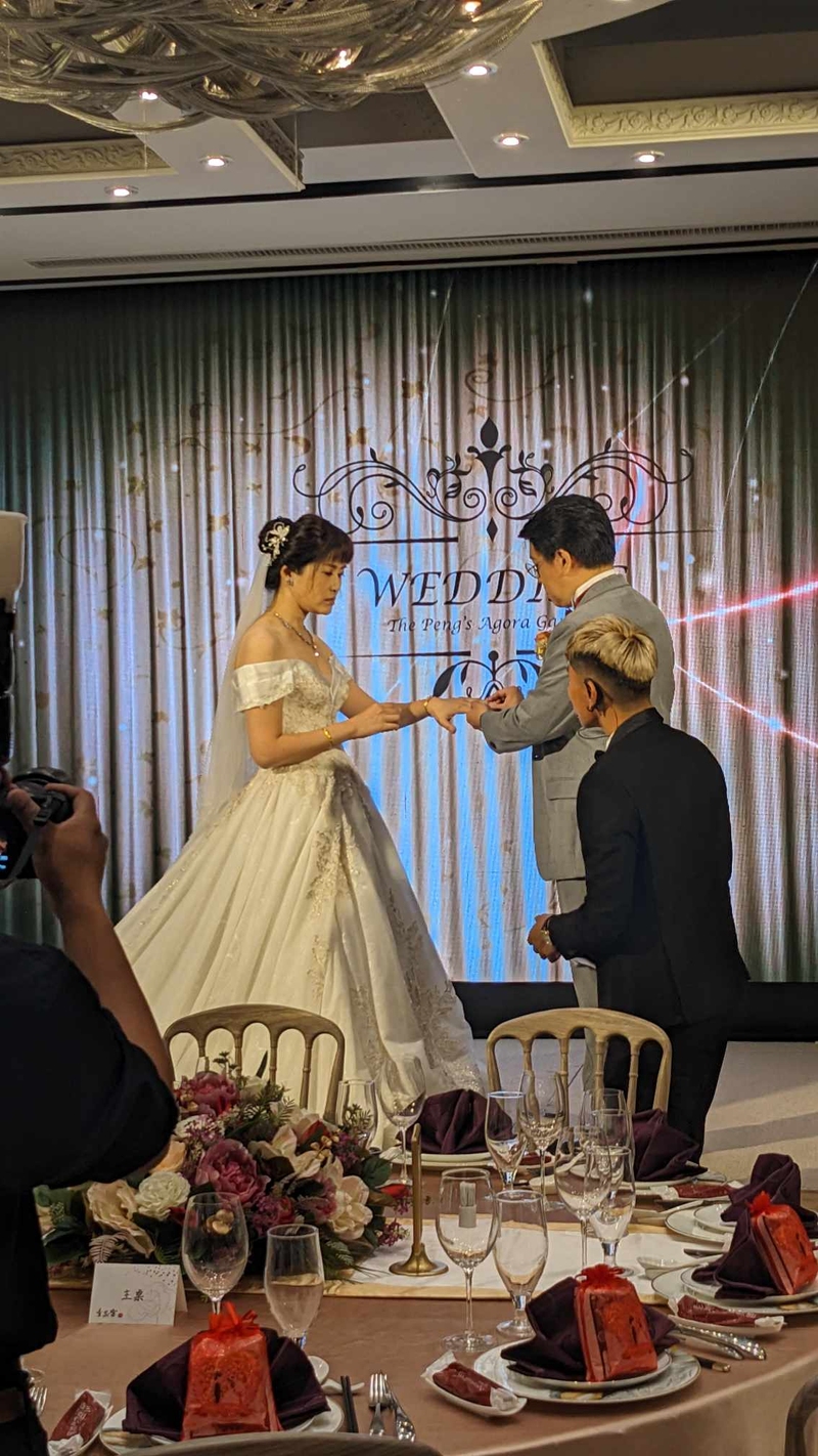 前幾天在彭園壹品宴辦了婚宴。整體非常棒,新娘和我注重的部分,首先是餐點要好吃,空間簡單大方,不要有太奇怪的格局就好,也沒有要像戶外庭園婚禮之類的特殊情境。彭園壹品宴所在的第一大飯店是棟老建築,柱間距比較小是難免的,但靠著裝修解決了這個問題。看了幾間飯店,彭園壹品宴是裡面最優秀、CP值最高的。新娘準備室很大很明亮,方便新娘化妝及各項準備工作、親友拍照、暫置雜物等。尤其當天的新娘小秘書非常擅於和小花童們互動,讓小花童能減低緊張,快樂上場,這個真的是超級厲害。現場的燈光、音響等等都很棒,每位親友拍出來的照片都很棒,可見照明設計有下過功夫,我們本來在進場需不需要暗場有思考了一下,後來亮燈進場拍起來的效果很棒,甚至如果午宴戶外天氣不錯,打開窗簾就著室外的風景用餐也會很美。謝謝壹品宴的所有工作團隊,尤其是負責和我們接洽的黃小姐Cathy,幫我們把所有細節安排得服服貼貼,自帶歡樂氣場的婚禮主持Nick,讓我們在緊張的時候也能順利把氣氛帶回來,謝謝您們給我倆一生難忘的婚禮!