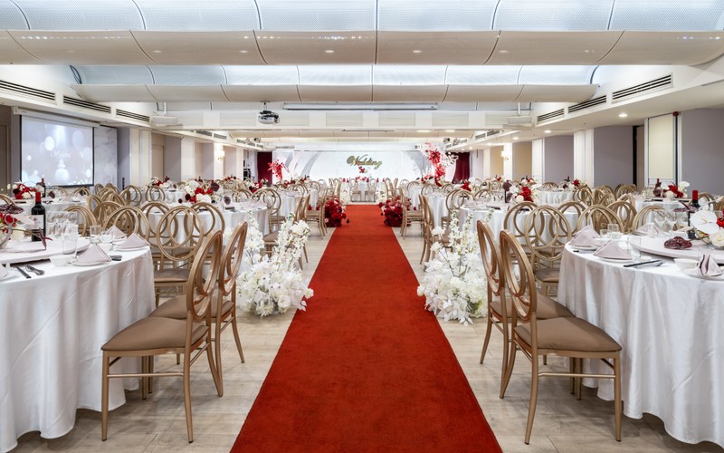 ★場地:我們桌數落在25-30桌,夢幻廳符合需求,看現場無樑柱,配合投影幕,賓客可以好好的觀看舞台畫面,不會有遮住的問題,另外收禮桌在廳內,與隔壁廳不相互打擾,我很喜歡。