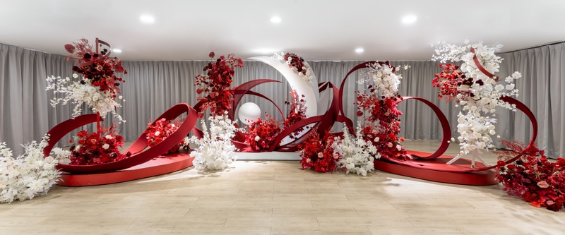 ★布置:送客背景(板)很氣派、很高雅,有獨特性,超級喜歡;舞台兩旁、紅毯旁、收禮及放相簿的桌子,全都有裝飾了~真的讓新人很省心。