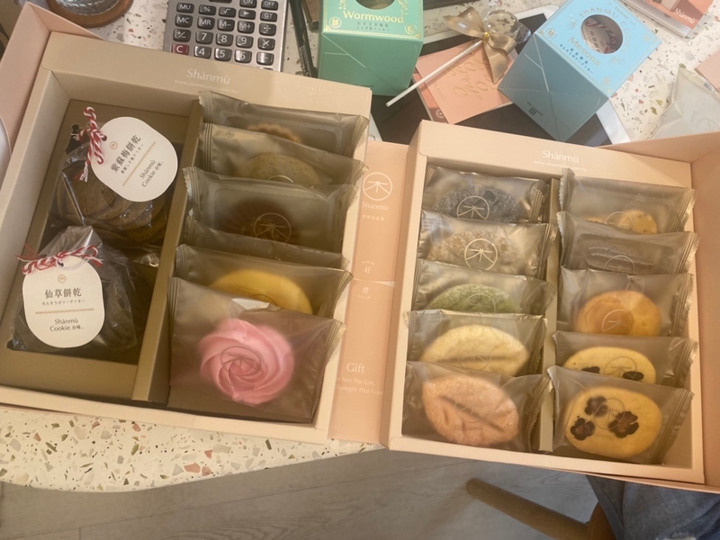 他們家的喜餅跟大部分的喜餅很不一樣,主打台灣風格,將台灣特有的植物、果物融合到蛋糕及餅乾中。蛋糕的話有知名的紅玉紅茶、茉莉花茶、東方美人口味,餅乾的樣式更豐富,有紅豆艾草餅乾、爆米香餅乾、仙草餅乾,每個吃起來都能感覺到淡淡清香,心情+100分!另一種我自己很喜歡的是森林酥,洛神、火龍果、艾草等口味搭配上葉片狀的可愛外型,自然感+100分。最後推的是可以看到花瓣的花見餅乾,把有機種植的可食用花朵片片舒展開來貼上,讓四季的顏色在表面綻放,美觀+100分!