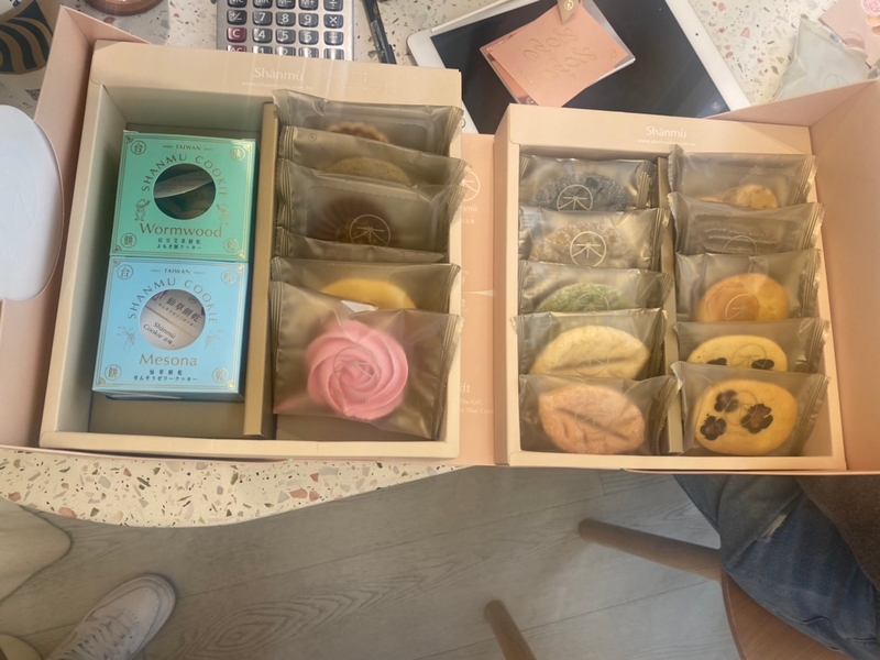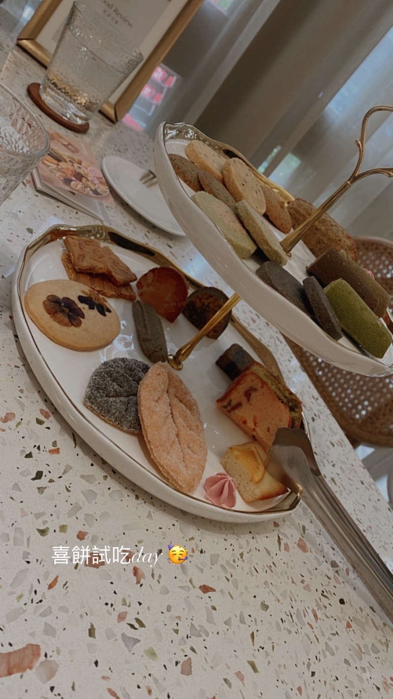 店鋪位置在台中綠園道旁靜謐的小巷中,店員很親切的帶著我們試吃每樣小點,吃完後也會讓我們自由討論想要挑哪些品項組合,過程輕鬆愉快沒有壓力,是很開心的訂購經驗~