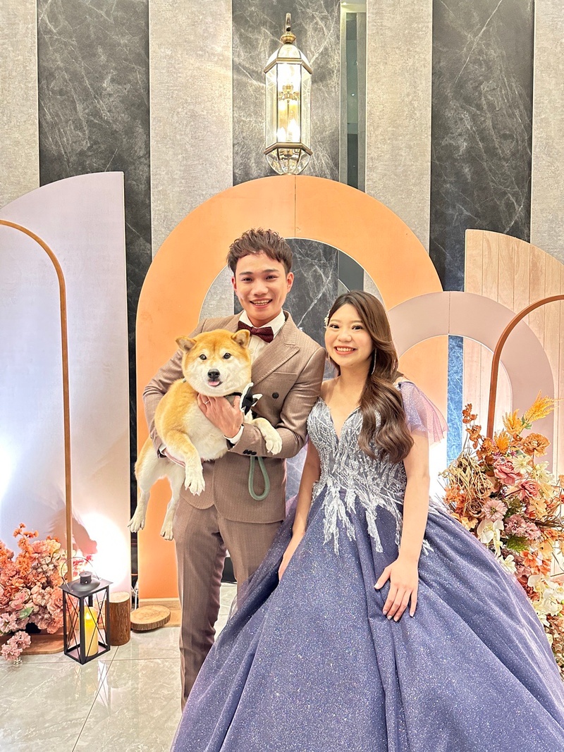 接下來就是用加購價的優惠加購主持人方案,提供給我們的主持人是Angle,從婚宴的前一個月溝通流程及一進二進到送客,大部分內容都是Angle提供想法給我們,讓我們可以不用再去安插其他活動,也很謝謝彭園餐廳能夠提供寵物友善的環境,讓我家的毛小孩可以在二進的時候當小花童🤭🤭🤭