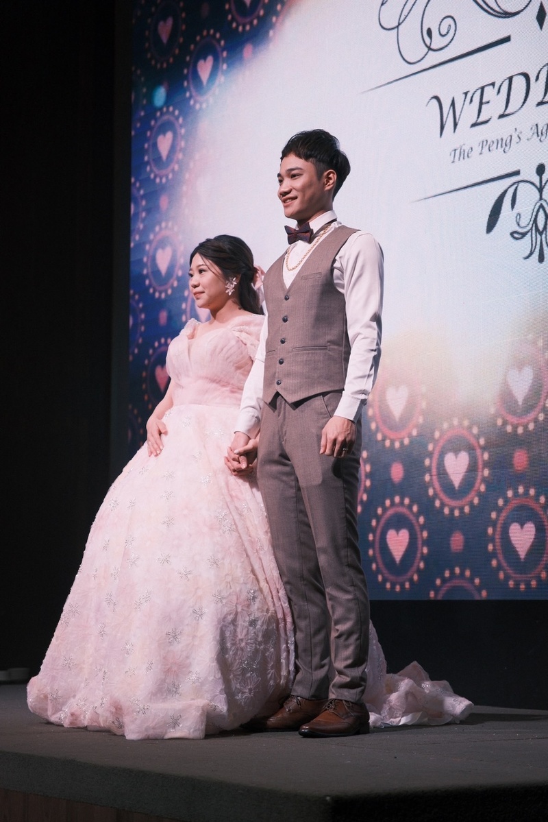 113/02/25也就是結婚的當天,也因為我挺著8個月大的肚子,服務人員及婚禮小管家花花都很細心的照顧我深怕有個不小心。彭園也提供儀式讓我們新人能夠在在宴會館中舉行,我們的儀式也是由主持人Angle來幫我們操刀,儀式結束完就是招待賓客入席,雖然在這過程中一直給主持人Angle不確定的桌數,但Angle還是每一次都很有耐心的告訴我們不要緊張,還有怎麼解決對策!讓我們可以緩解一下緊張氣氛😵💫