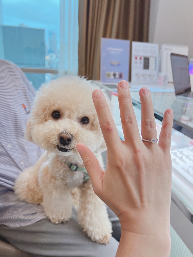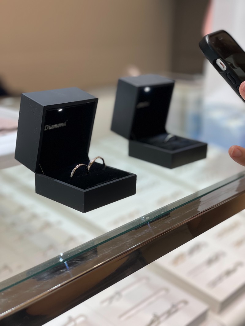 一開始櫃姐先介紹了鑽石的基本知識,包含4c、八心八箭等等,並說明他們家有特別找日本相關的認證(有興趣自行查找官網XD),因為事前有做功課所以並沒有詢問太多問題,後續櫃姐就詢問預算、克拉數後,慢慢的,真的是慢慢的...一次拿兩顆鑽石給我挑選,二擇一後櫃姐才會再拿新的一顆,每拿新的一顆不知道為什麼就要花好幾分鐘,感覺一定要有一些程序,或許是公司要求,但我個性比較急,我覺得這樣挑選的方式很沒有效率,整體讓我感覺其實沒有很好,如果還有其他鑽石符合需求且能挑選的,為什麼要這樣一次一顆...。另外當時挑選的時候是在週年慶,人來人往滿吵雜的,如果會在意的建議可以避開XD,價格上有比IDiamond較貴,但我覺得差距沒有到不能接受。