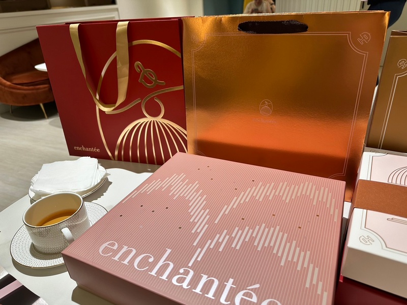 當天準時來到門市試吃,我們是從中部開車上來的,『enchantée樂朗奇』,在前一晚還打了電話過來跟我們再次確認試吃時間,並且還提供了附近哪裡有停車場的資訊(對於我們從中部上來真的很貼心),進到門市當下就覺得,哇!這是網美店吧!門市的布置、包裝樣式的陳設、簡潔明亮的空間,都讓人覺得這間店真的很特別!