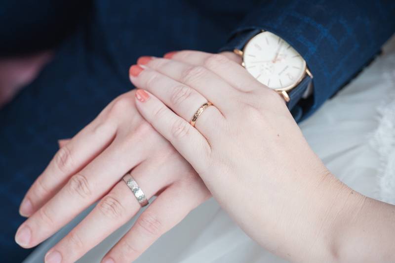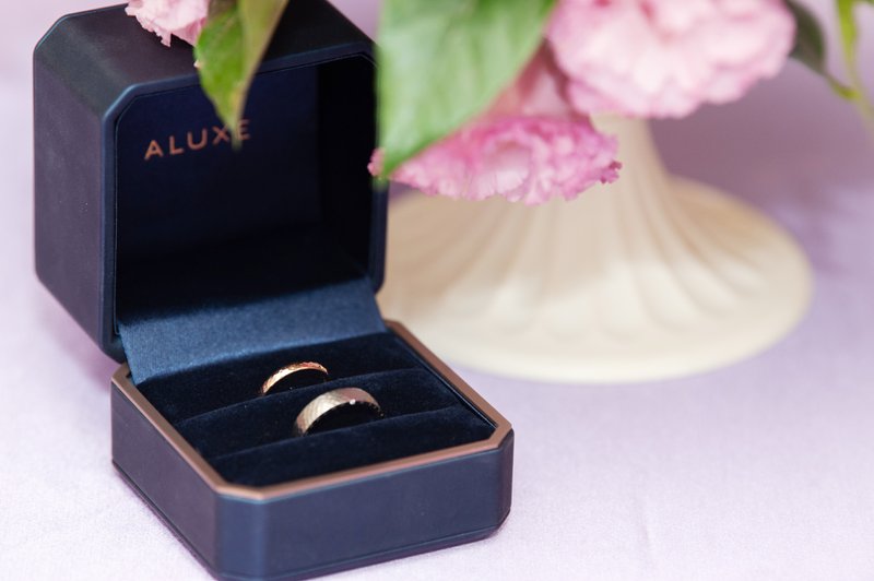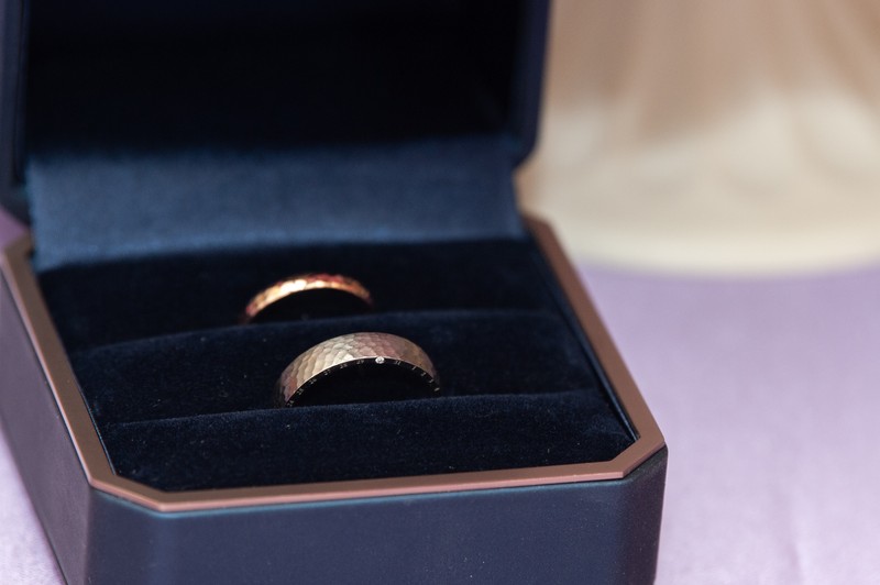 我們選中的是德國工藝的錘鍛設計男女對戒,這款線條簡潔,完美地結合了經典與現代的元素,先生選擇錘鍛霧面的鉑金600男戒,既有金屬的穩重感,又不失溫暖,呈現出一種低調優雅的質感。而我喜歡閃亮的感覺,所以選了錘鍛亮面的設計,加上張力鑲上一顆30分的小鑽。超愛這款玫瑰金的顏色,不但顯白,光澤更是閃亮到不行,不論是日常佩戴還是重要場合,都能完美搭配。不得不提亞立詩的服務人員很有耐心,不斷幫我們修改設計稿,最終搭配出我和先生都滿意的組合,在同款設計中又多了很多客製化的巧思,希望能體現彼此的獨特性,也象徵了兩人之間的互補和契合。