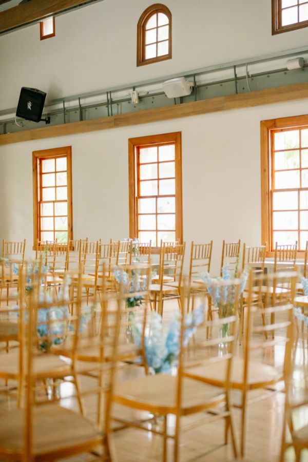 證婚區兩旁也擺放著金邊竹節宴客椅,場域無柱設計,確保每位賓客都能有很好的體驗。