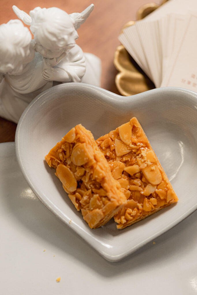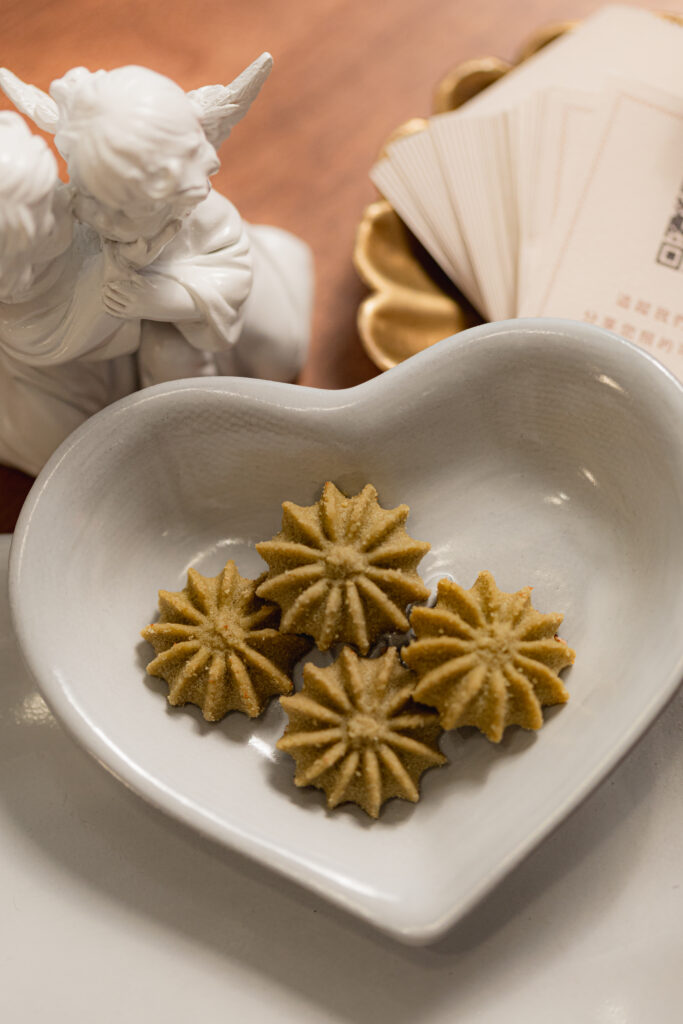 接著進入令人期待的「Koti Koti」邱比特店喜餅試吃時間,喜餅顧問會詢問要搭配氣泡水或茶,不同於以往喜餅試吃提供的茶與咖啡,我覺得檸檬氣泡水是一個很新鮮的選項!過程中氣泡水也能給與口腔清爽感,更能仔細品嚐出每一款餅乾的差異。餅乾常溫21天,磅蛋糕常溫6天,費南雪/瑪德蓮常溫15天,建議收到商品後都放置於冷藏。