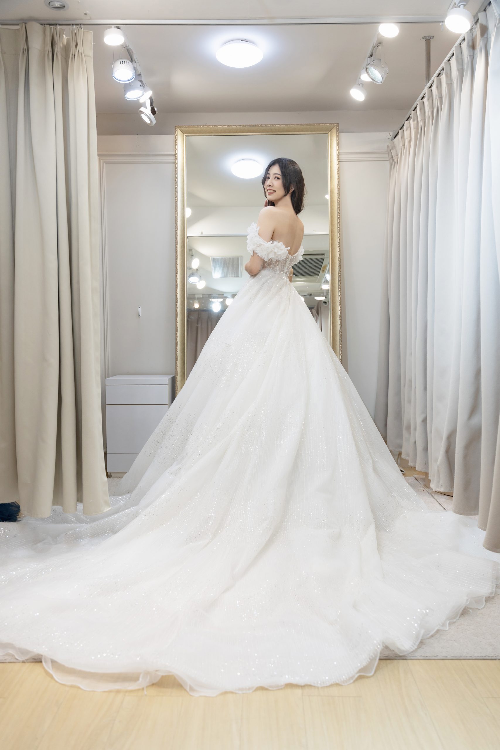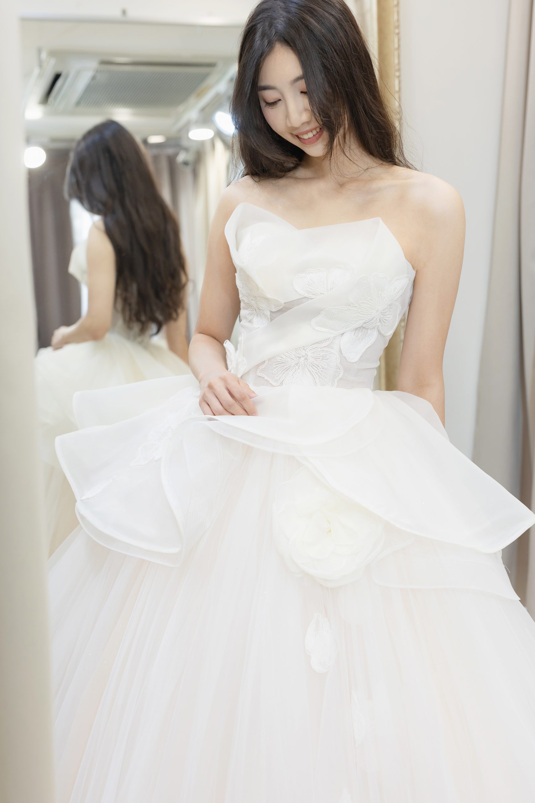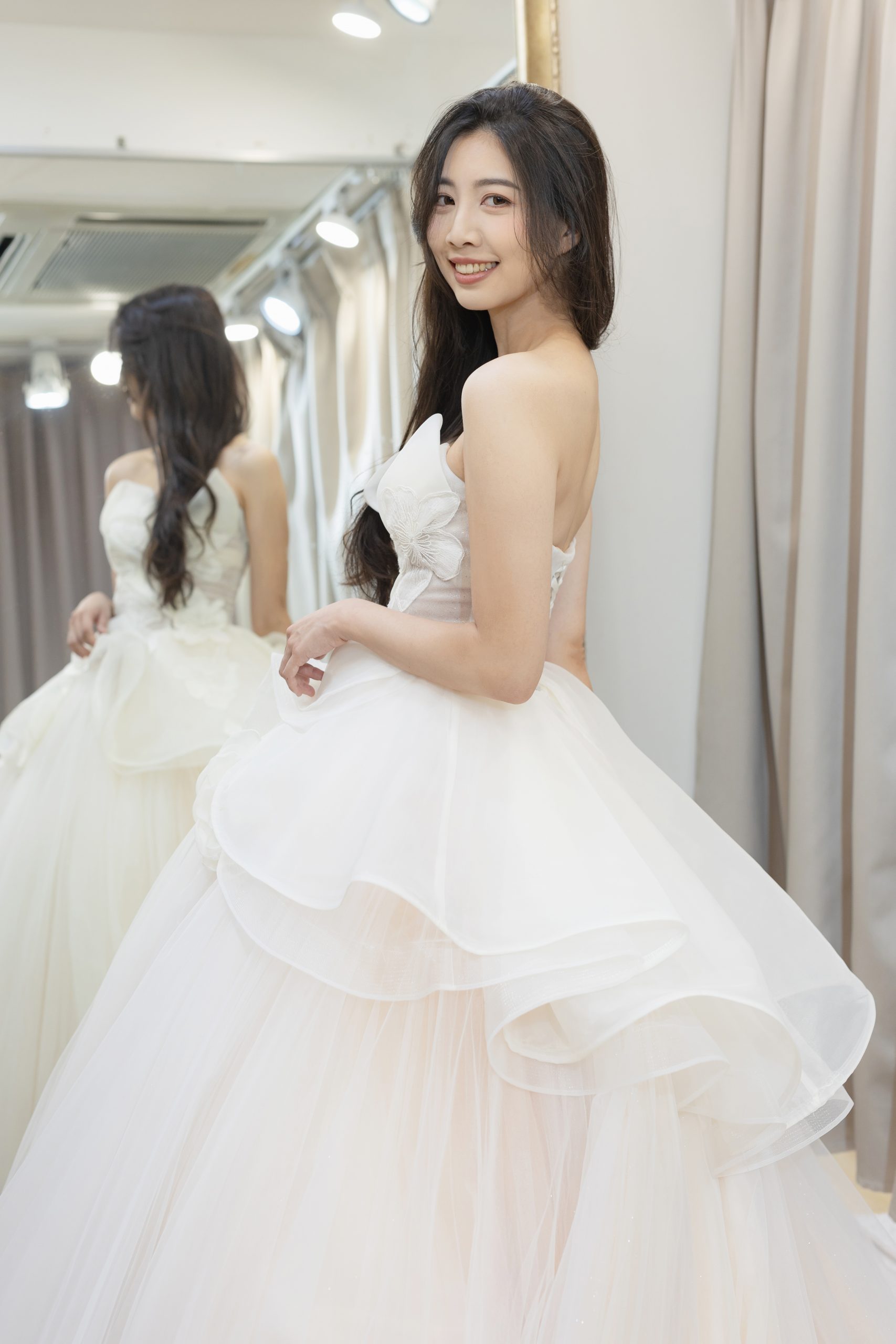 因此,即便是在現在的婚紗淡季來訪,當天所有的試衣間都還是滿滿的人潮!
