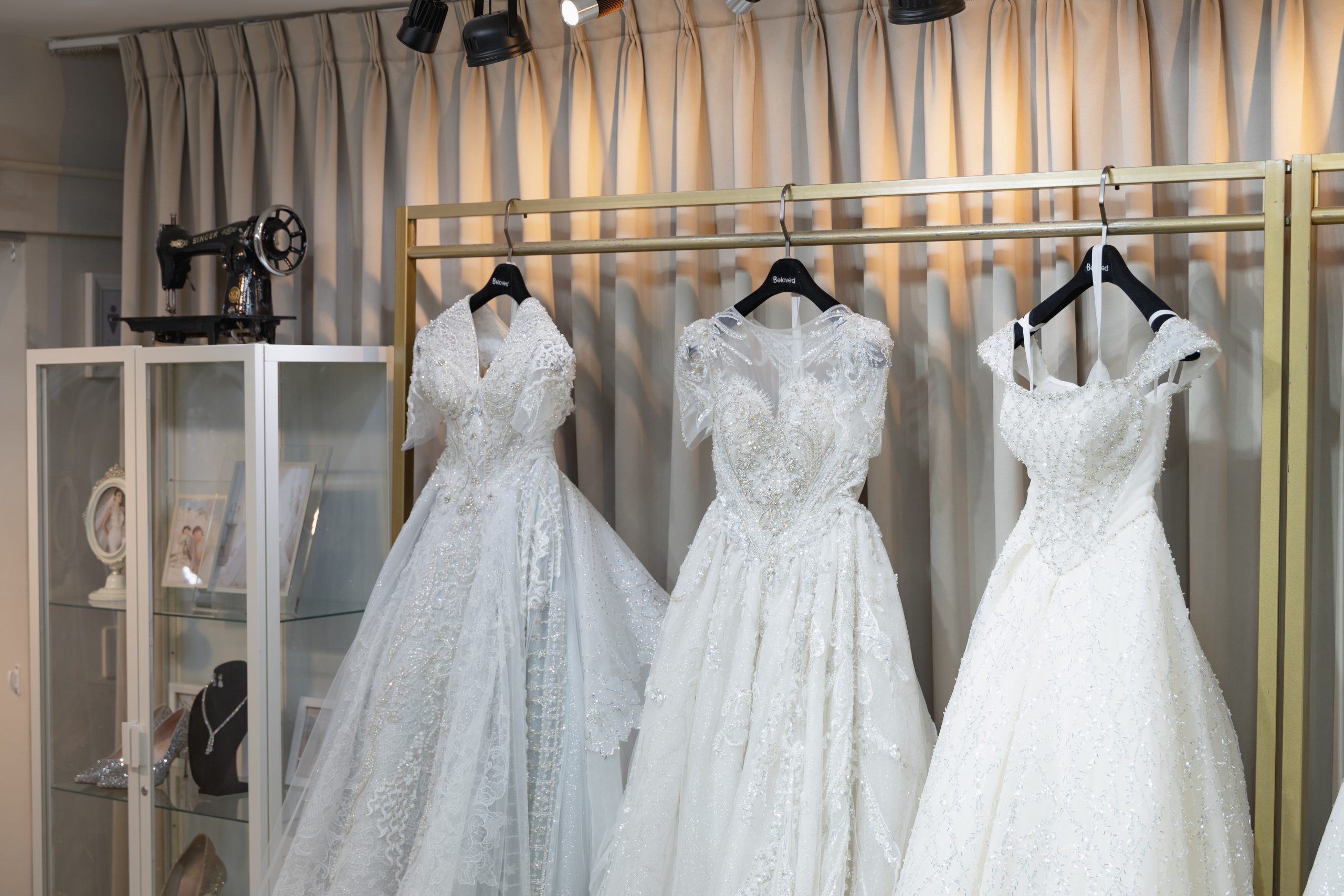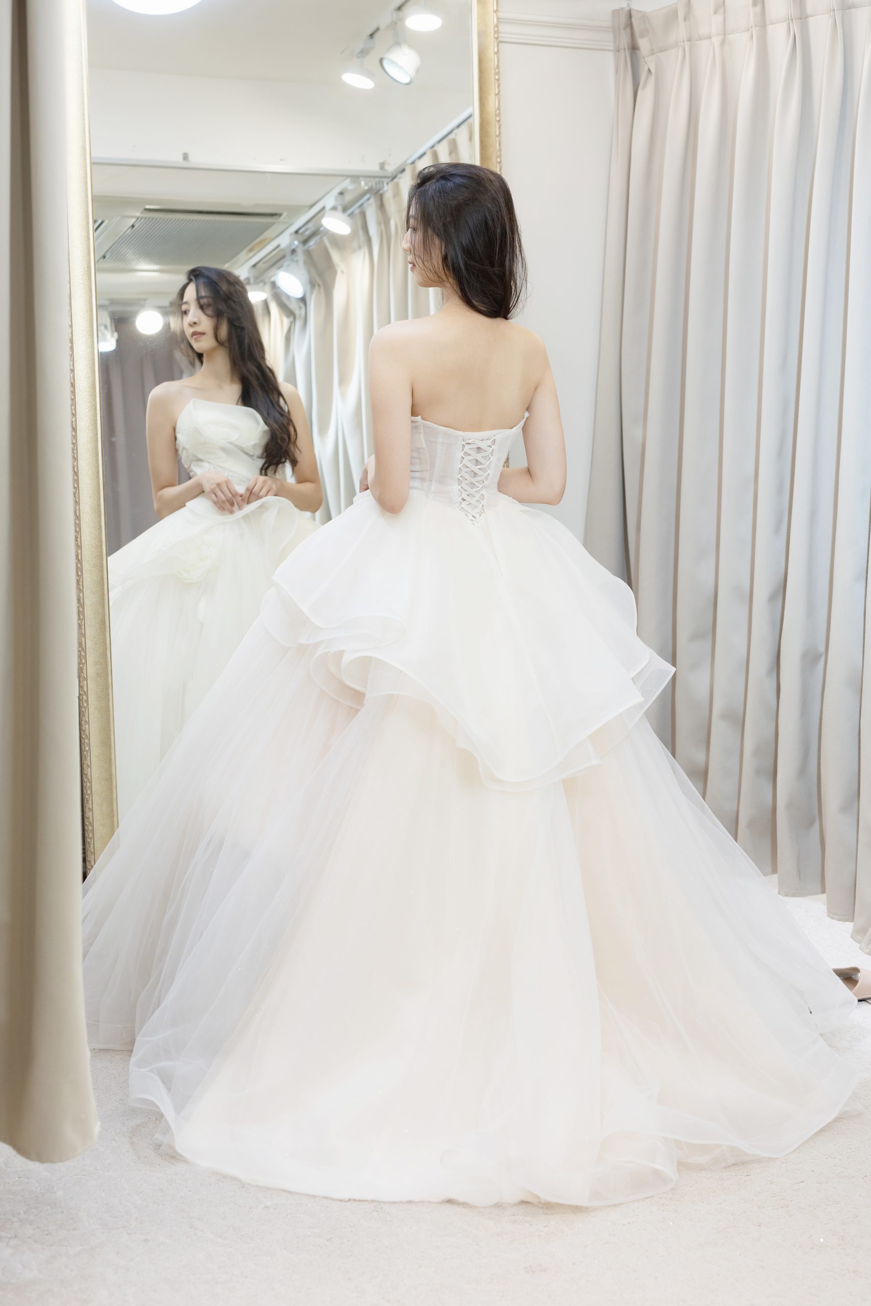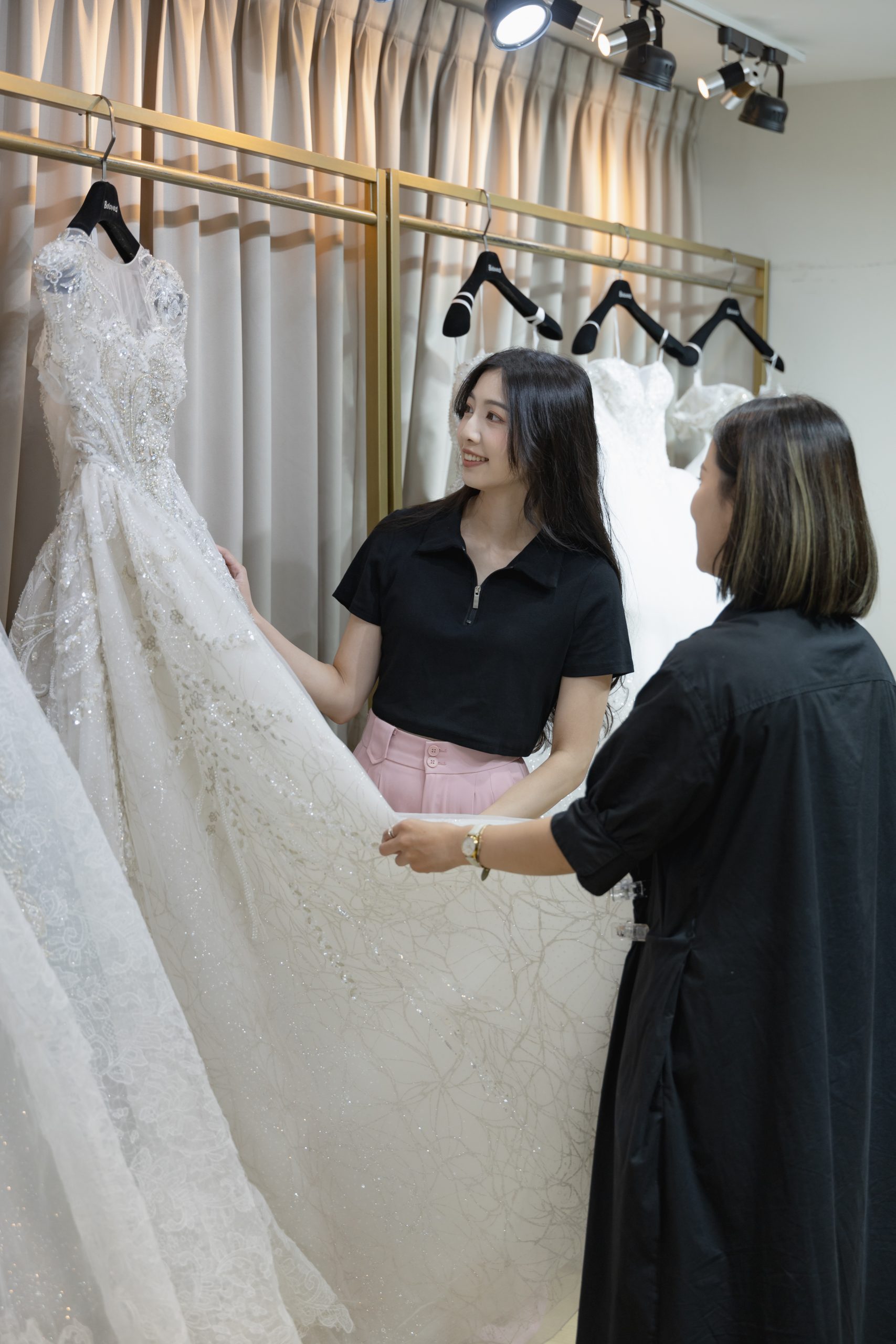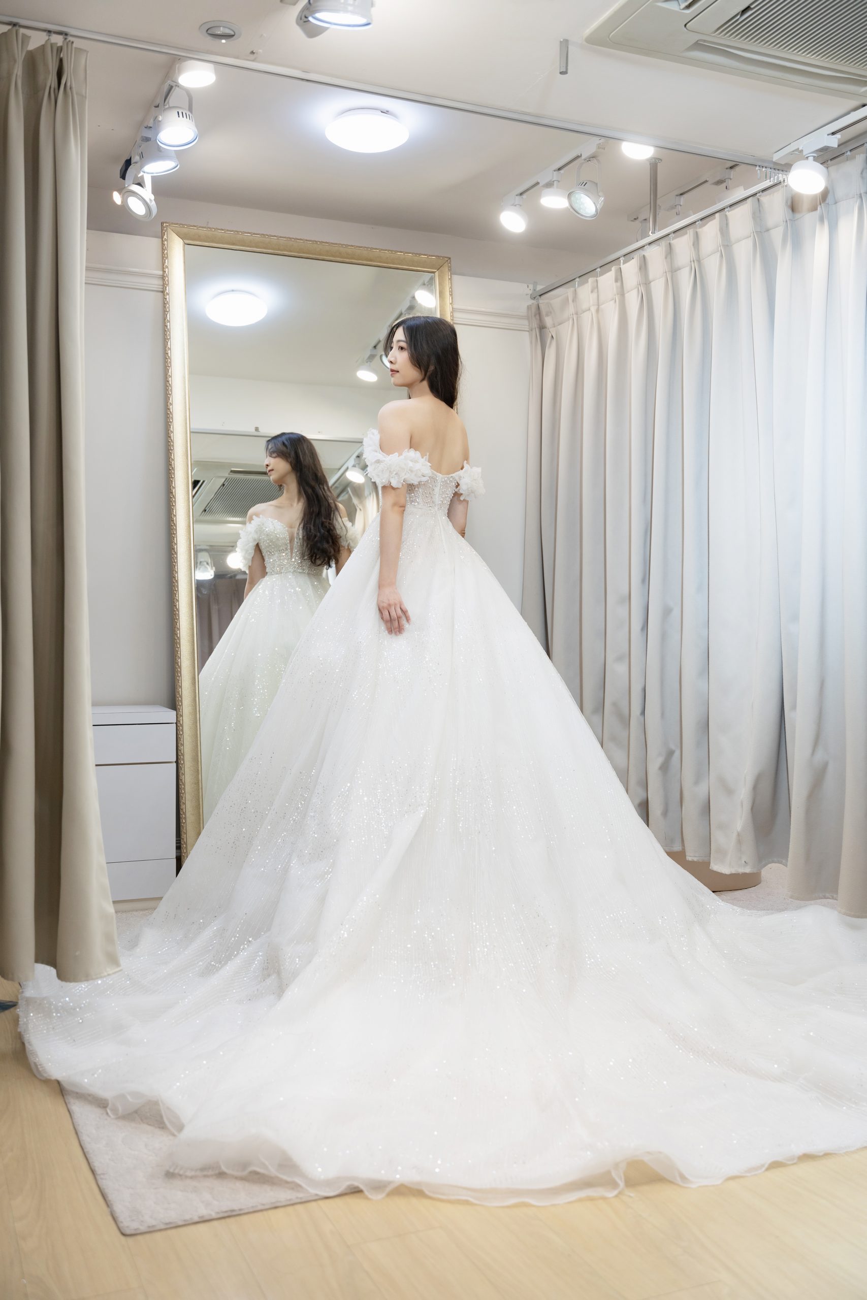 因此,即便是在現在的婚紗淡季來訪,當天所有的試衣間都還是滿滿的人潮!