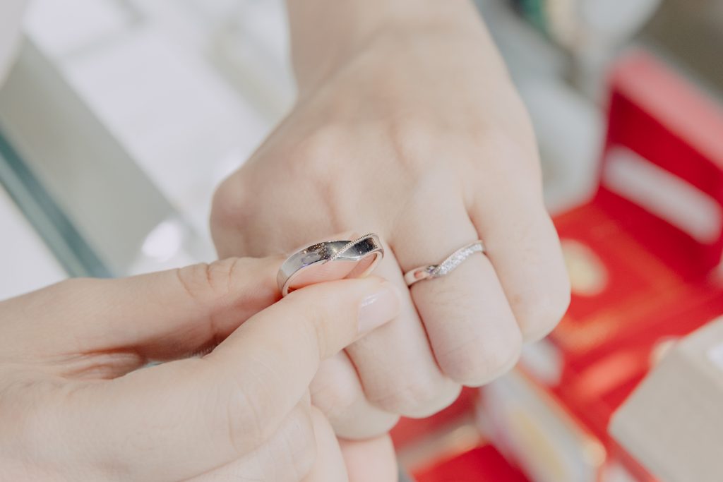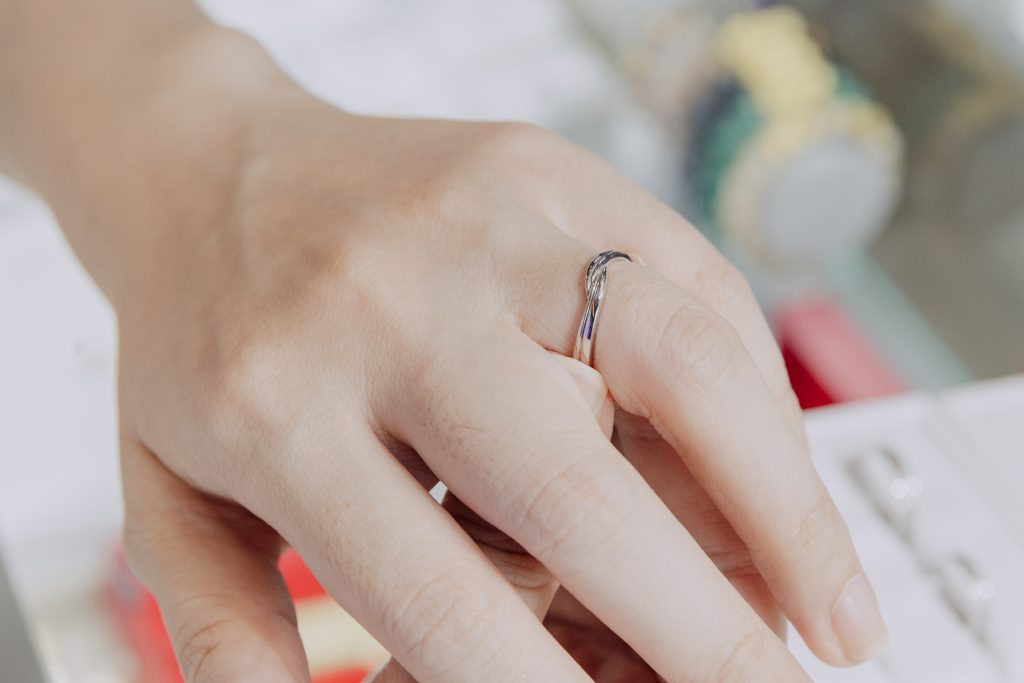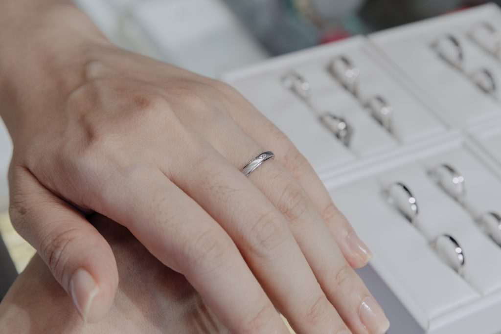 線型的設計帶著一點流線感,戴上後不只貼合手型,手指還看起來更修長。男款戒圈則稍微粗一些,線條感依舊俐落,卻多了幾分穩重與沉穩氣息。戒指有細緻的打磨,套上的瞬間幾乎感覺不到邊角,戴起來真的超舒服!