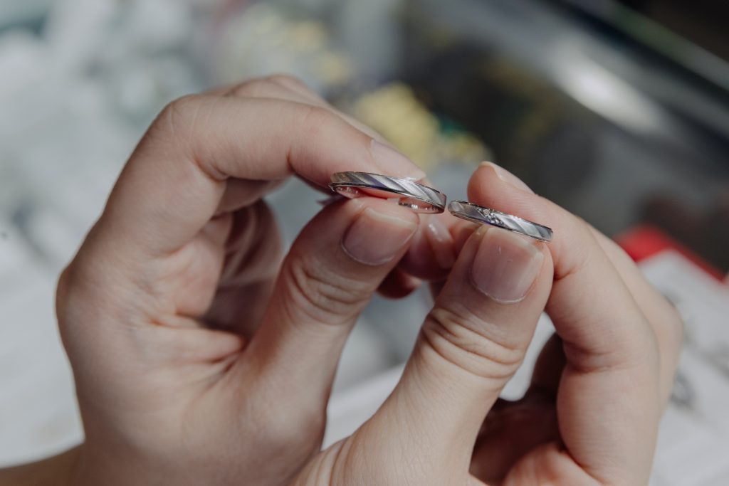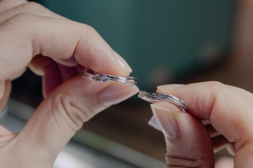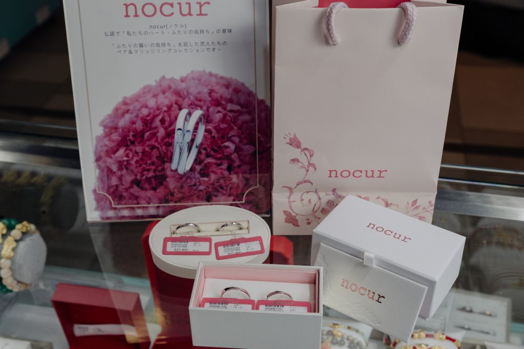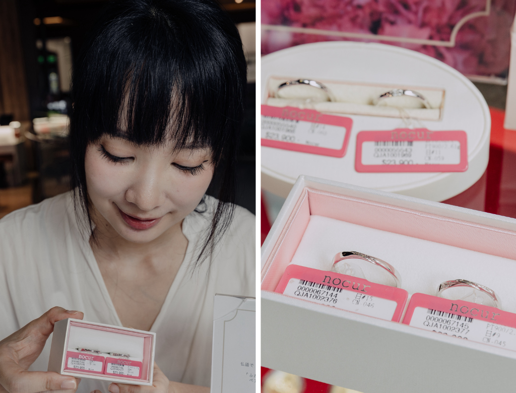 想挑品牌的對戒,金瑩珠寶也有!Nocur 為日本婚戒品牌,延續日本一貫的工藝與嚴謹態度,從鍛造到打磨皆在日本原廠完成,同時附贈專屬戒盒與紙袋。每個戒指都呈現精緻的手工細節與穩重的金屬質感,設計兼顧日常配戴的舒適與典雅外觀。