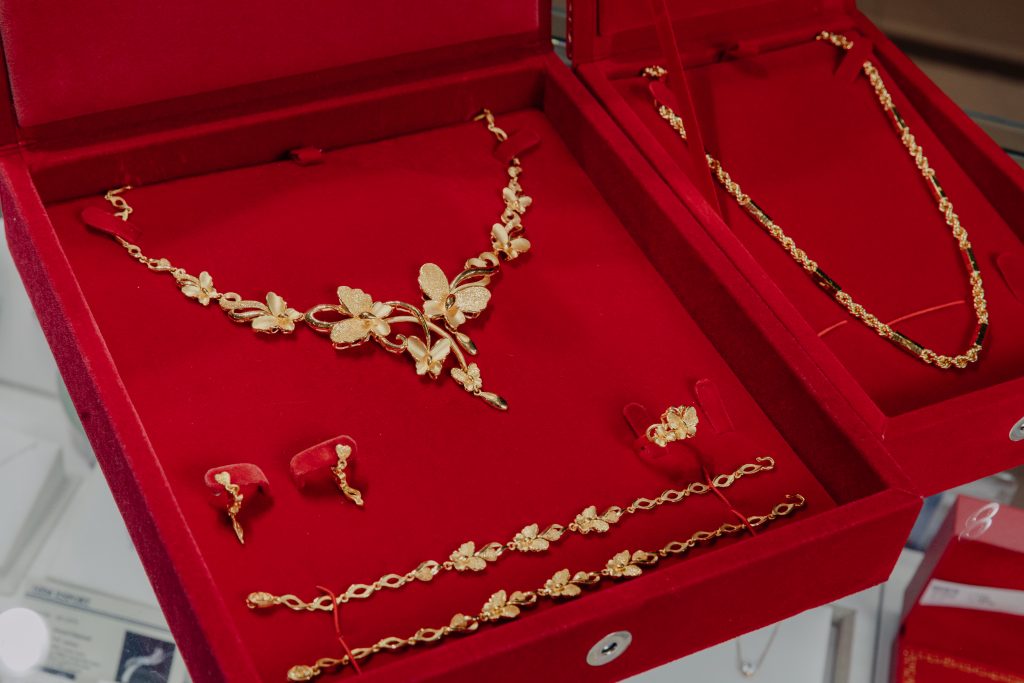 再來就是結婚用的黃金套組,黃金代表著富貴與美滿,戴上它就像把幸福和祝福都攬在手裡。