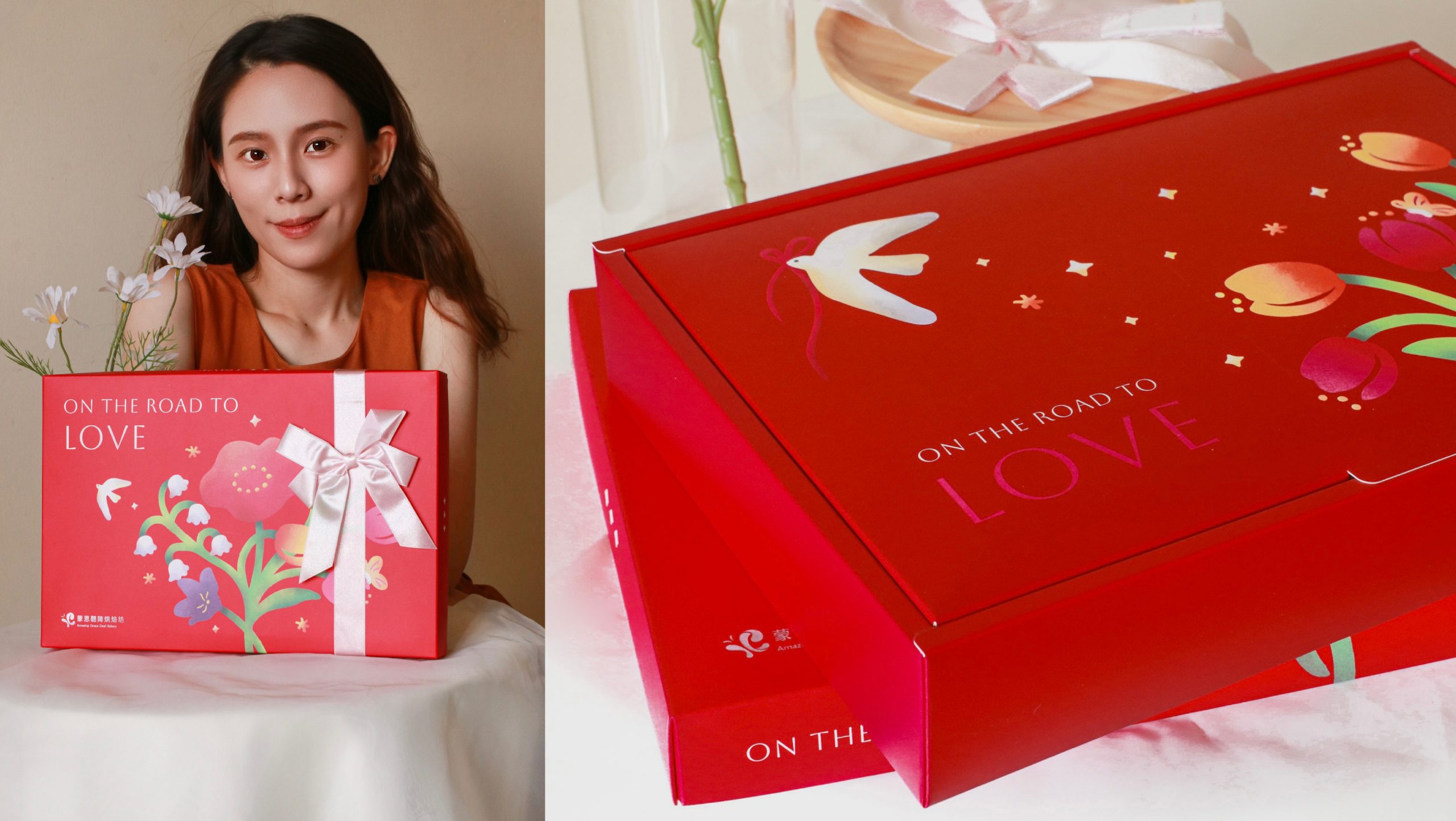 風格以浪漫玫瑰花為設計靈感,盒身將柔美色系與花語擴展,寓意「愛情的言辭」,而如此的色系滿足長輩們的喜氣感,更是讓新人少一點擔憂。希望當賓客收到一份禮物禮盒,就像收下一束花般的浪漫,讓禮盒不僅是甜點的承載,而是雙方被珍藏的愛情誓言,平鋪直敘意誠滿,都是新人的心意啊!
