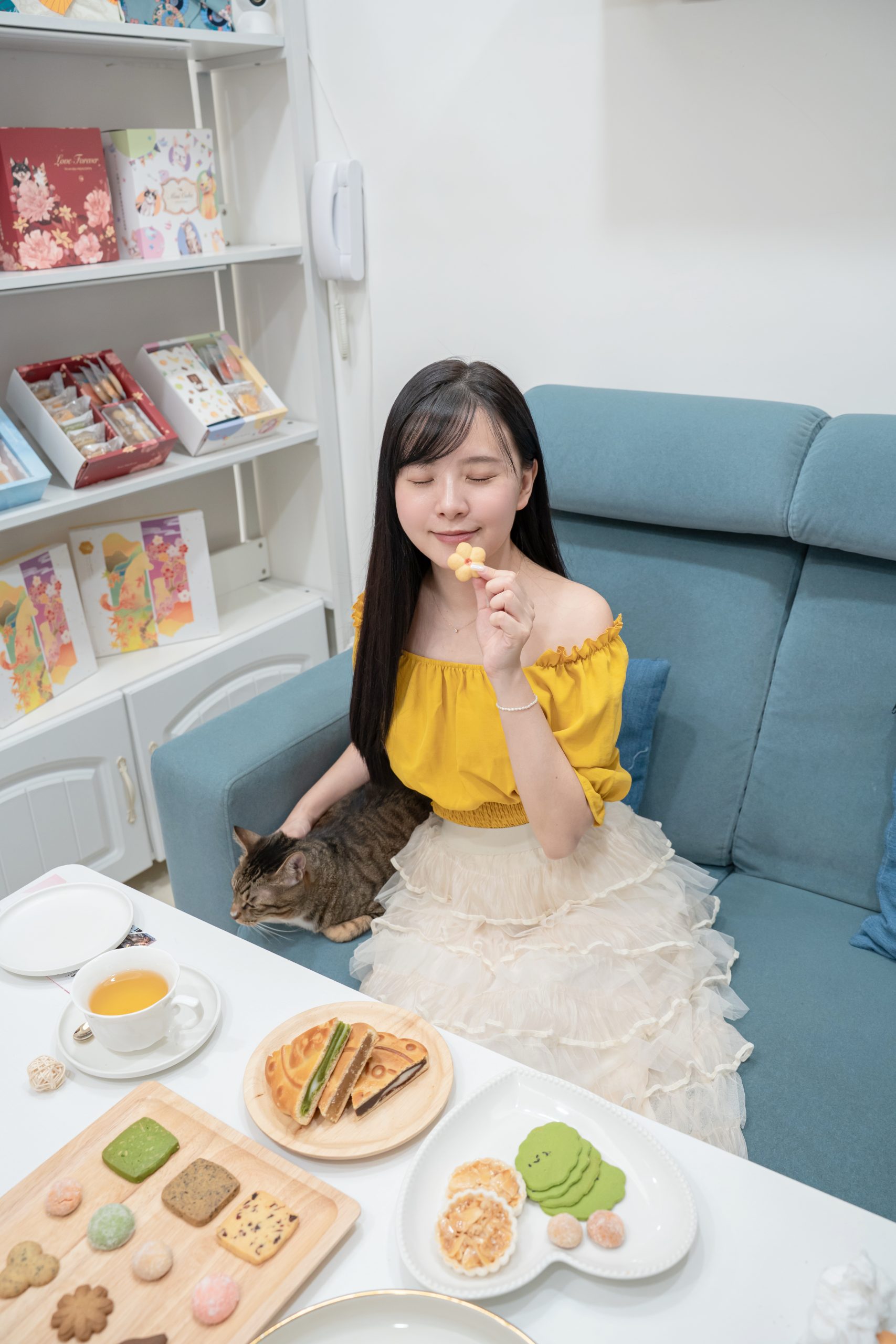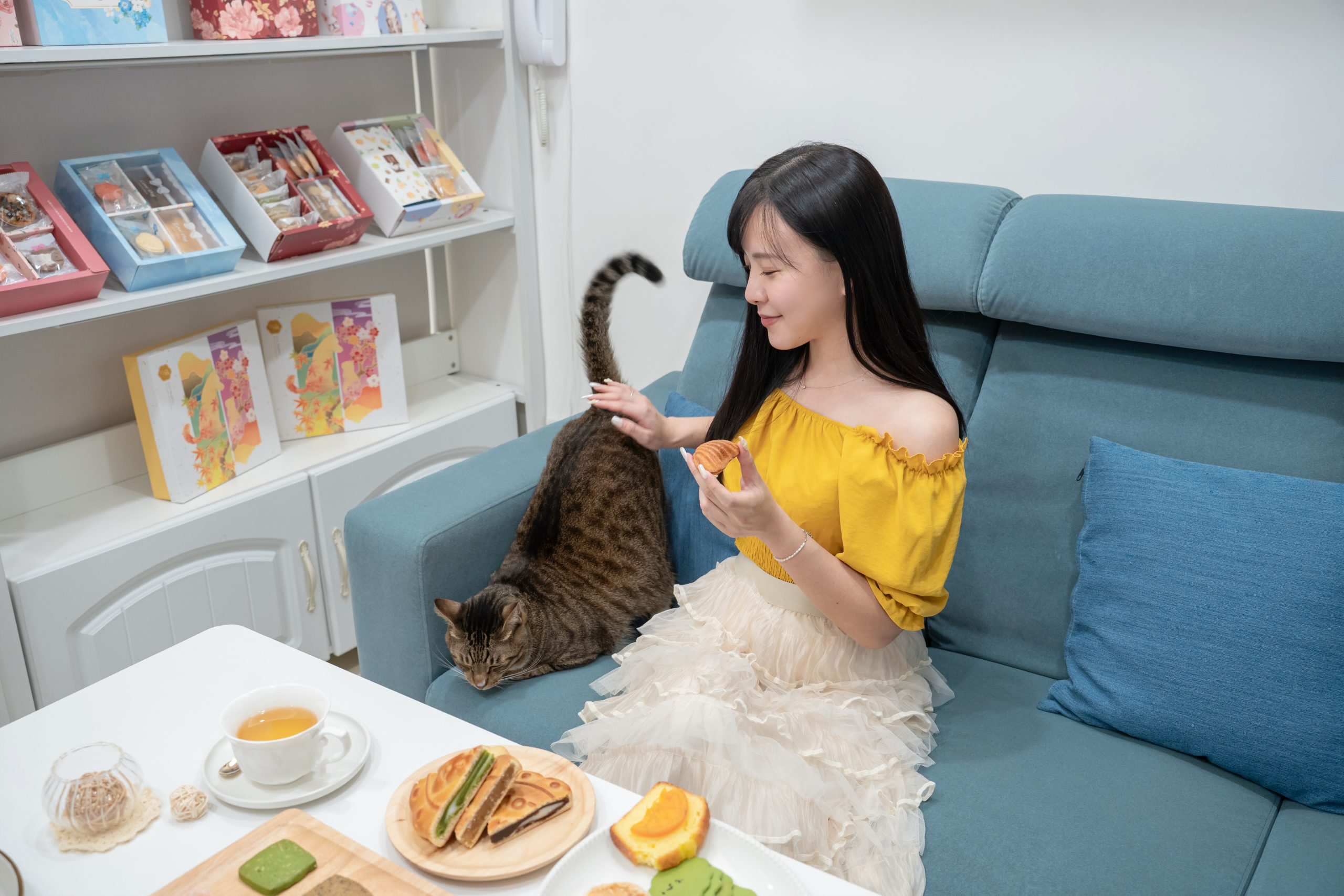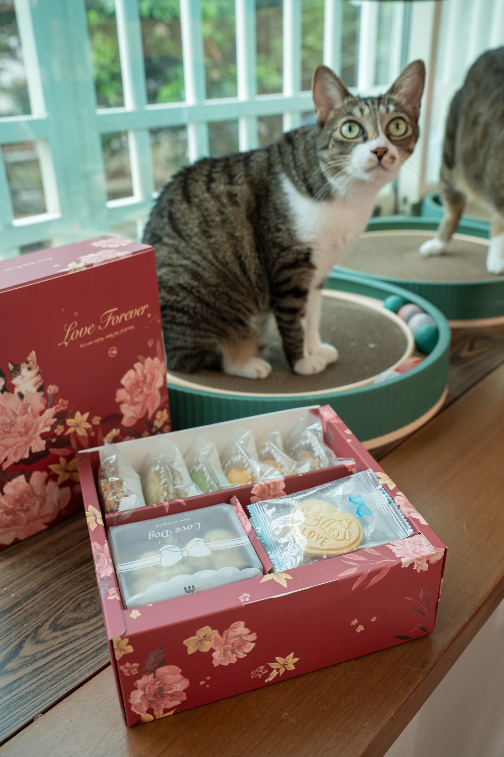 第一次體驗到一邊試吃喜餅一邊摸著貓咪的幸福感