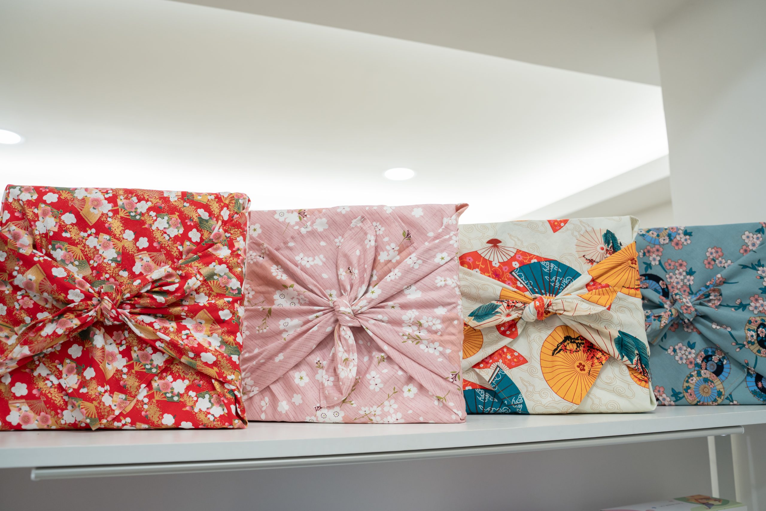 上方的日式花布,是幸福狗公益喜餅的九宮格禮盒加購包裝