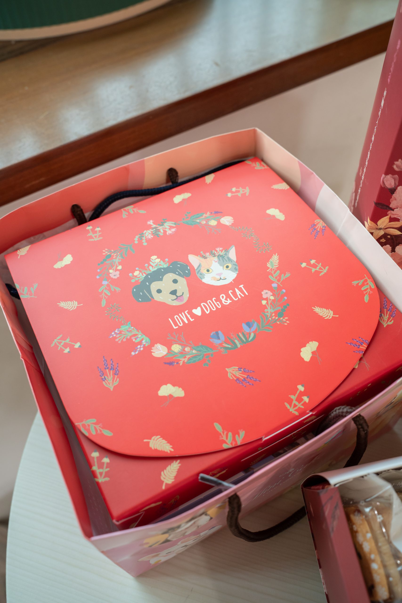 這款則是紅色花藝結合貓貓狗狗的喜氣風格禮盒